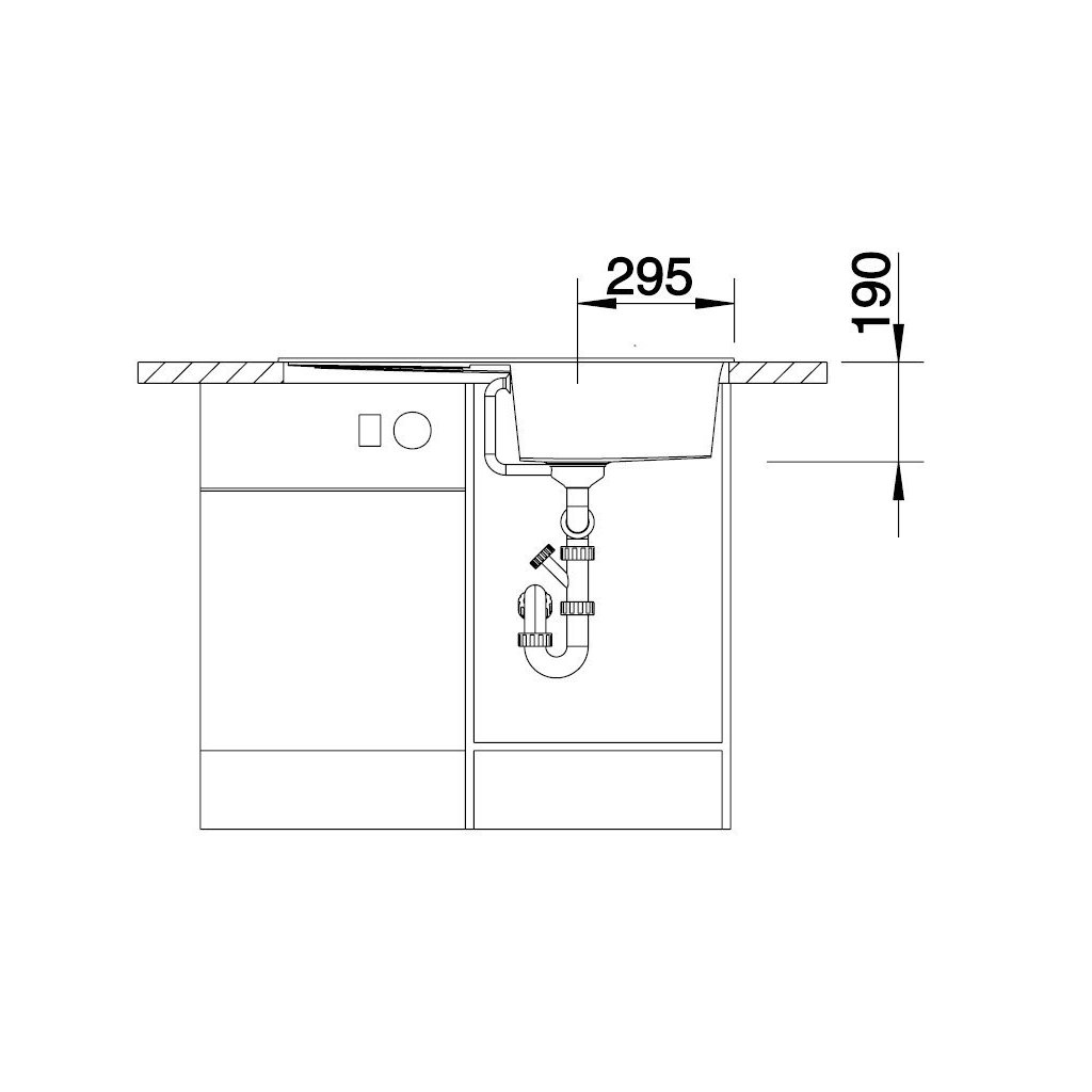 - Adâncimea cuvei este de 190 mm