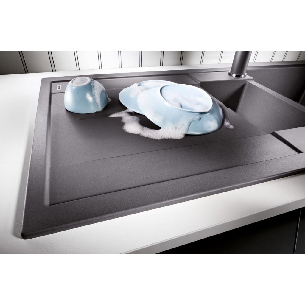 METRA 6 S de la Blanco este o chiuveta cu 1,5 camere cu dimensiunile de 1000 x 500 mm. Tava de chiuveta mai mare cu dimensiunile de 360 x 430 mm are o adancime de 190 mm si are o suprafata practica de scurgere pentru o utilizare mai eficienta a chiuvetei. Cada mai mica are dimensiunile de 170 x 285 mm. Chiuveta este destinata instalarii pe blatul de lucru dar si sub blatul cu o latime a dulapului de minim 600 mm. Puteți alege dintr-o gamă largă de culori. O chiuvetă din granit este foarte ușor de întreținut. De asemenea, rezistă la zgârieturi și alte eventuale daune din utilizarea normală. Este stabilă în culoare și, de asemenea, rezistă la temperaturi ridicate. Unul dintre avantajele chiuvetei este porozitatea redusă și elementele antibacteriene, datorită cărora chiuveta devine o opțiune igienică pentru gospodăria ta.
