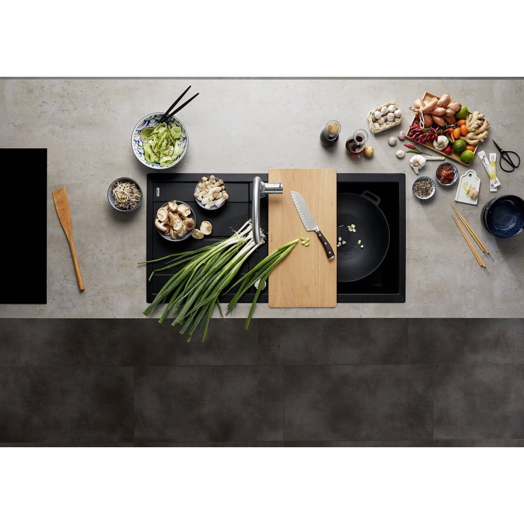 METRA XL 6 S produs de Blanco este o chiuvetă cu o singură cameră cu dimensiuni de 1000 x 500 mm. Tava de chiuveta cu dimensiunile de 490 x 430 mm are o adancime de 190 mm si are o suprafata practica de scurgere pentru o utilizare mai eficienta a chiuvetei. Chiuveta este destinată instalării pe un blat cu o lățime minimă a dulapului de 500 mm. Puteți alege dintr-o gamă largă de culori. O chiuvetă din granit este foarte ușor de întreținut. De asemenea, rezistă la zgârieturi și alte eventuale daune din utilizarea normală. Este stabilă în culoare și, de asemenea, rezistă la temperaturi ridicate. Unul dintre avantajele chiuvetei este porozitatea redusă și elementele antibacteriene, datorită cărora chiuveta devine o opțiune igienică pentru gospodăria ta.