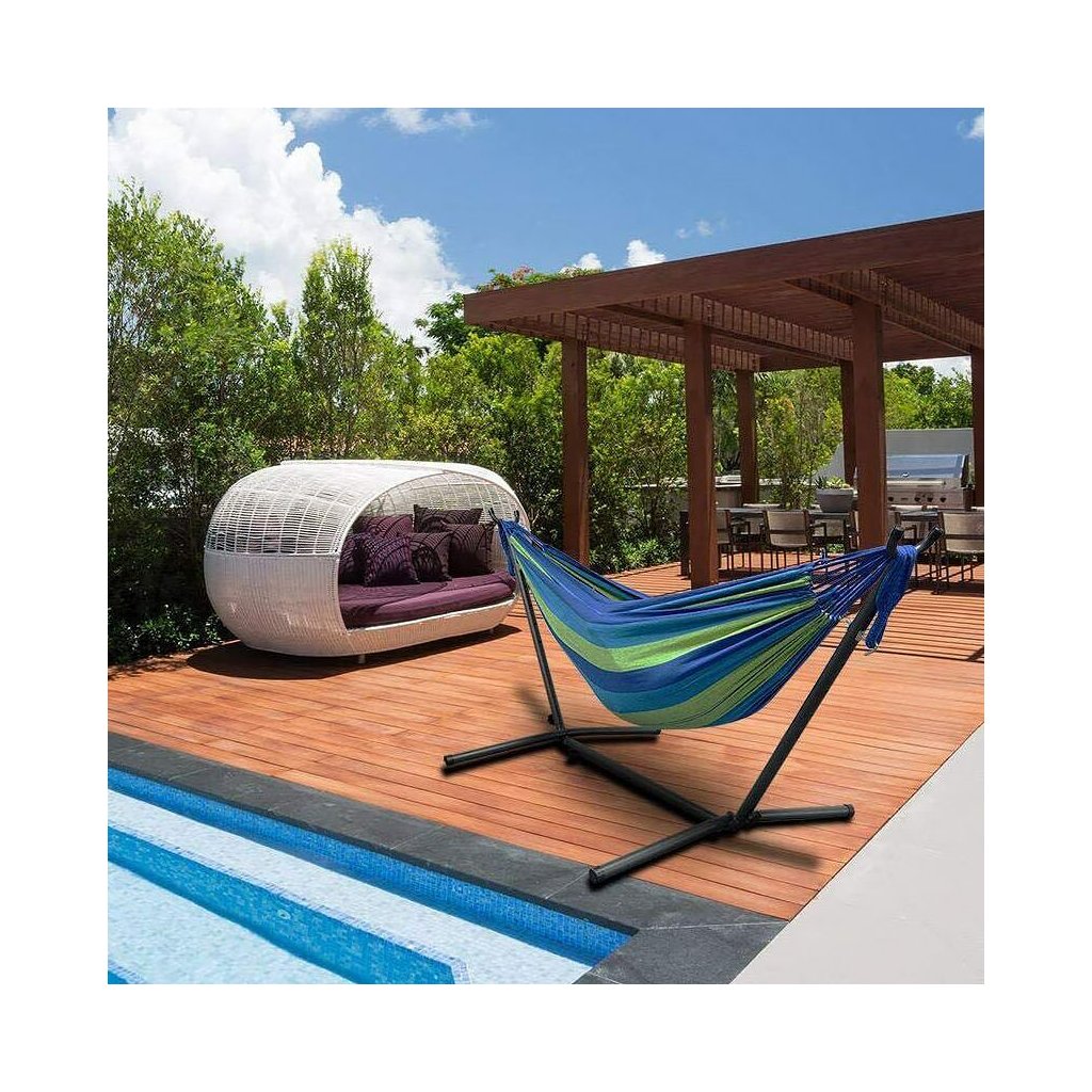 Fiecăruia dintre noi îi place să petreacă timpul în aer liber, hamacul pe care îl prezentăm putând fi folosit pentru relaxare deplină. Țesătura durabilă folosită pentru producție asigură confortul și siguranța utilizării chiar și de către copii. Materialul este respirabil, ceea ce îl face extrem de plăcut de utilizat chiar și în zilele calde și însorite.