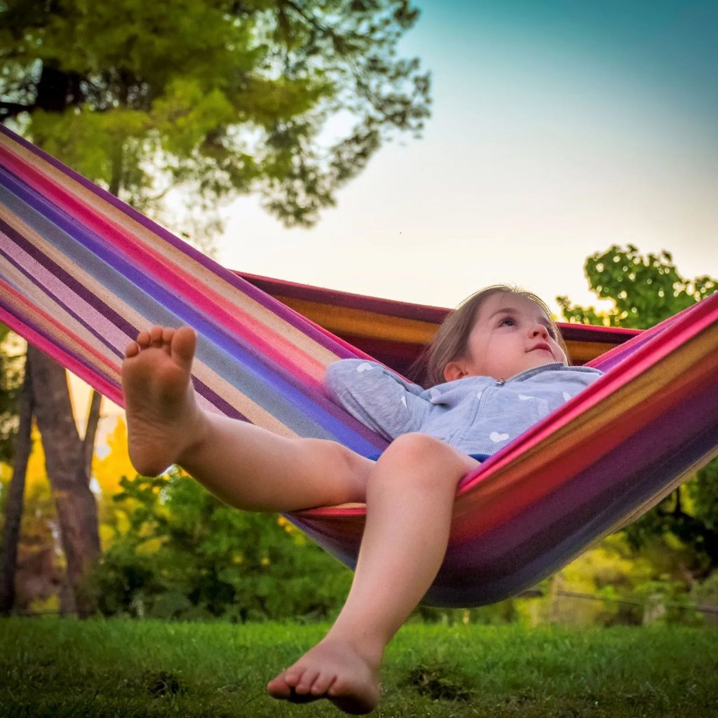 Fiecăruia dintre noi îi place să petreacă timpul în aer liber, hamacul pe care îl prezentăm putând fi folosit pentru relaxare deplină. Țesătura durabilă folosită pentru producție asigură confortul și siguranța utilizării chiar și de către copii. Materialul este respirabil, ceea ce il face extrem de placut de utilizat chiar si in zilele calduroase insorite. Legănarea într-un hamac ne ajută să ne relaxăm.