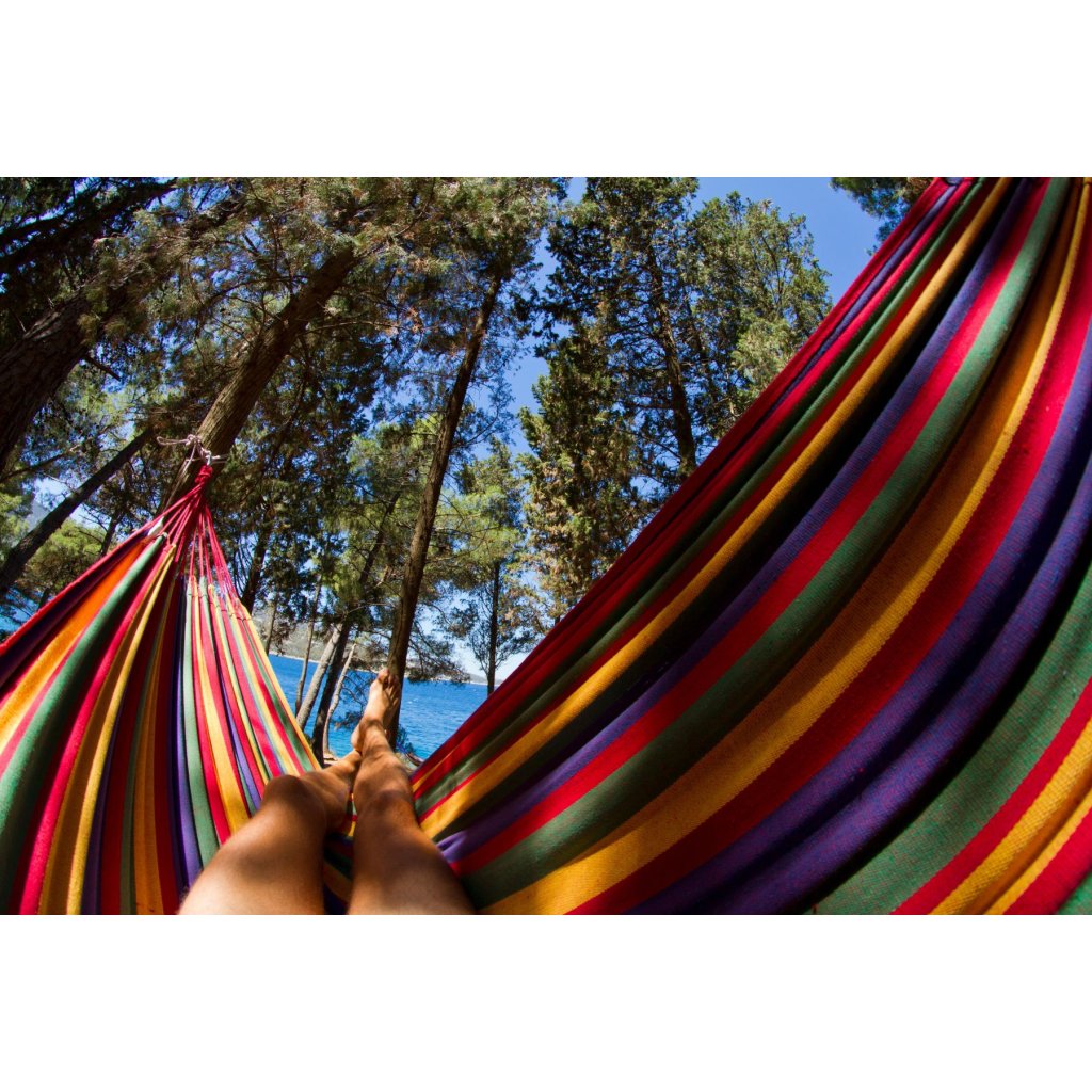 Fiecăruia dintre noi îi place să petreacă timpul în aer liber, hamacul pe care îl prezentăm putând fi folosit pentru relaxare deplină. Țesătura durabilă folosită pentru producție asigură confortul și siguranța utilizării chiar și de către copii. Materialul este respirabil, ceea ce îl face extrem de plăcut de utilizat chiar și în zilele calde și însorite.