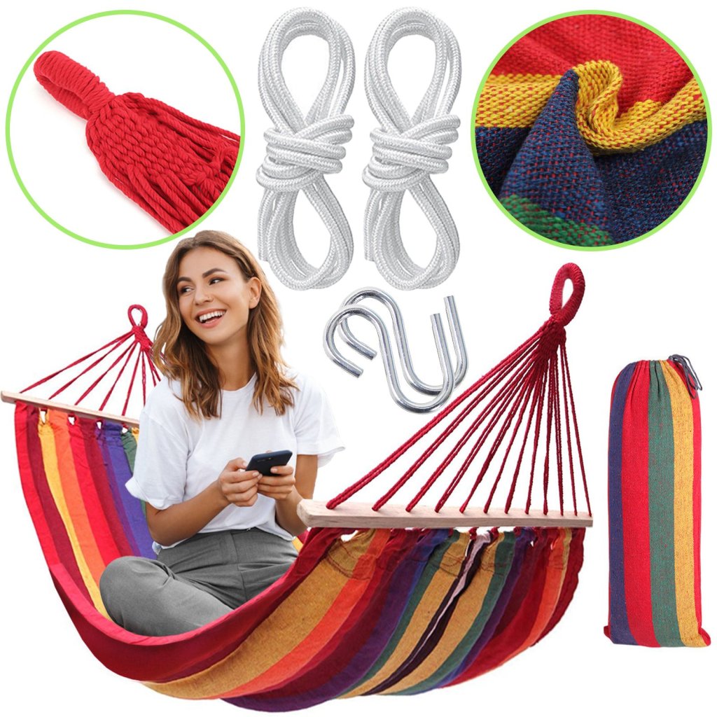 Fiecăruia dintre noi îi place să petreacă timpul în aer liber, hamacul pe care îl prezentăm putând fi folosit pentru relaxare deplină. Țesătura durabilă folosită pentru producție asigură confortul și siguranța utilizării chiar și de către copii. Materialul este respirabil, ceea ce îl face extrem de plăcut de utilizat chiar și în zilele calde și însorite.