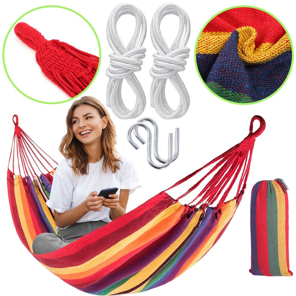 Fiecăruia dintre noi îi place să petreacă timpul în aer liber, hamacul pe care îl prezentăm putând fi folosit pentru relaxare deplină. Țesătura durabilă folosită pentru producție asigură confortul și siguranța utilizării chiar și de către copii. Materialul este respirabil, ceea ce îl face extrem de plăcut de utilizat chiar și în zilele calde și însorite.