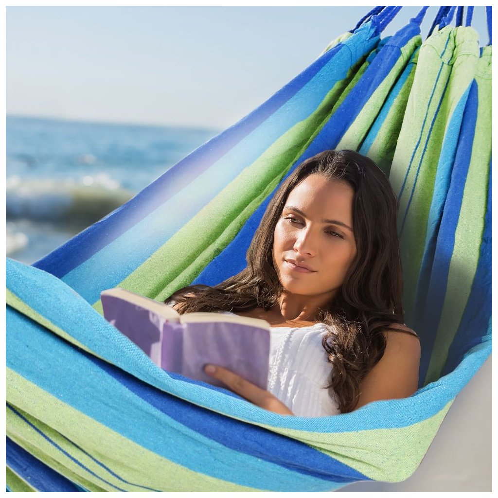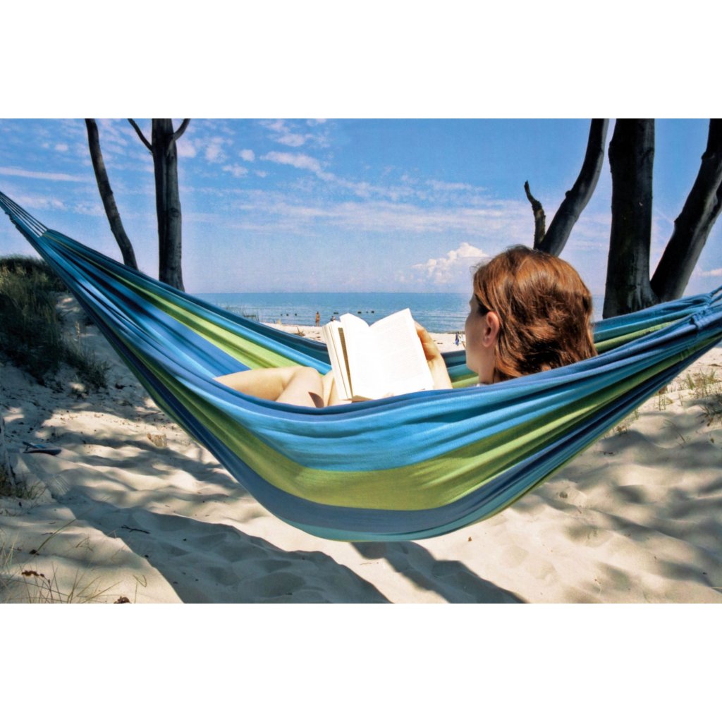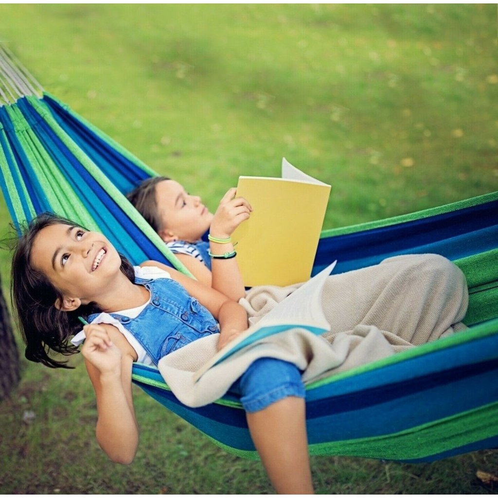 Fiecăruia dintre noi îi place să petreacă timpul în aer liber, hamacul pe care îl prezentăm putând fi folosit pentru relaxare deplină. Țesătura durabilă folosită pentru producție asigură confortul și siguranța utilizării chiar și de către copii. Materialul este respirabil, ceea ce il face extrem de placut de utilizat chiar si in zilele calduroase insorite. Legănarea într-un hamac ne ajută să ne relaxăm.