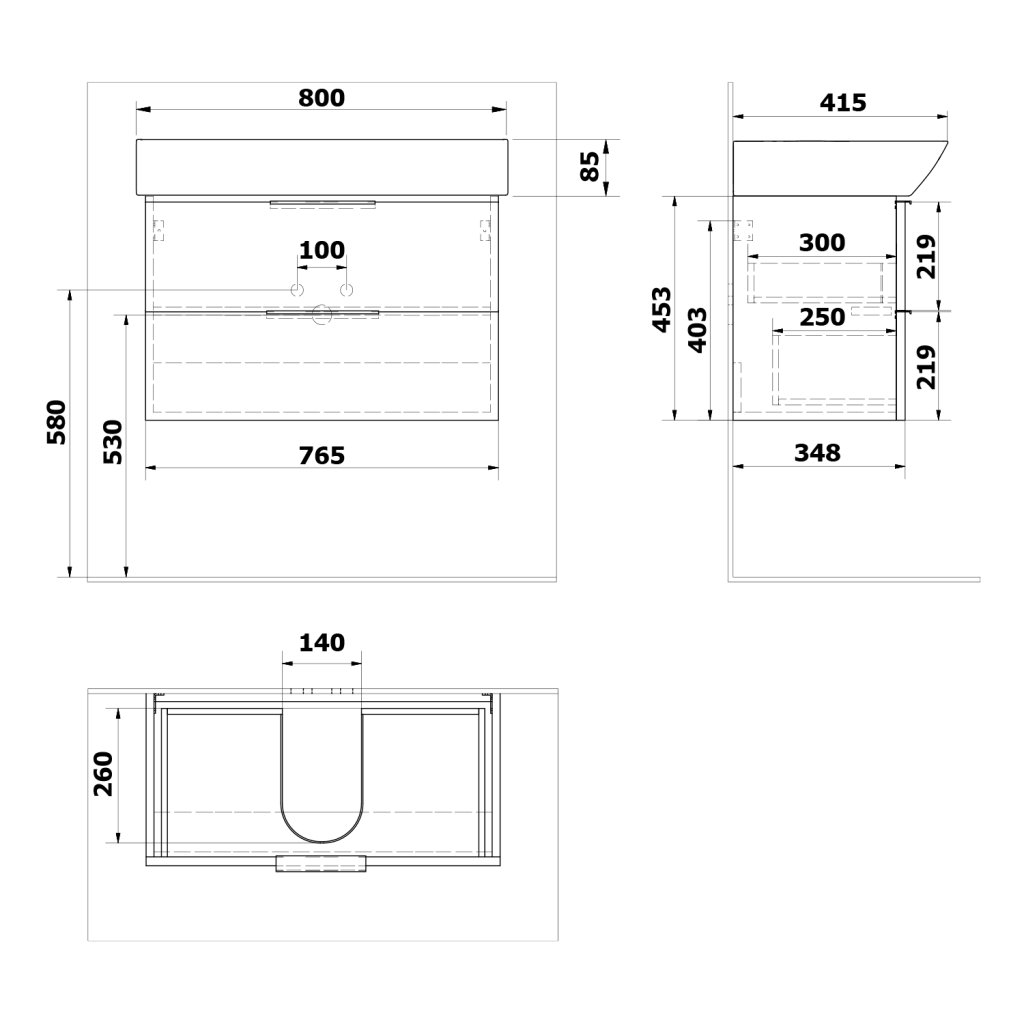 Bruckner, dulap NEON cu chiuveta ceramica 80x41,5 cm, alb, 501.115.0