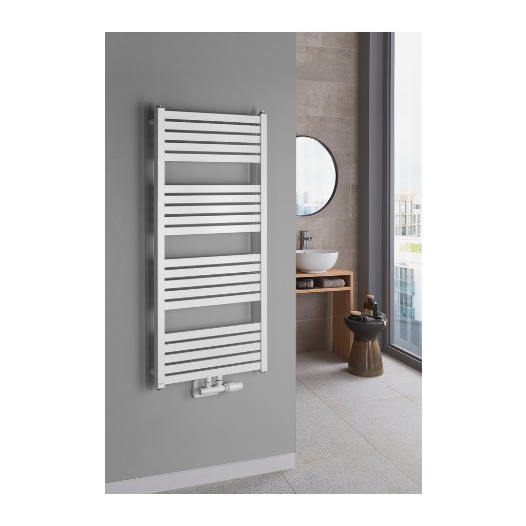 Elemente de incalzire GRUNT intr-un design elegant cu profile unghiulare si racord central, care pot fi combinate cu o tija de incalzire.