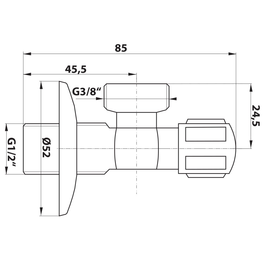 Sapho, Supapă unghiulară 3/8'x1/2', fără piuliţă, rotund, cromat