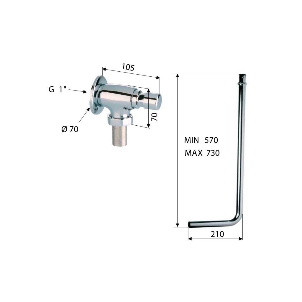 Bruckner, supapă de toaletă suspendată TEMPOR, cu închidere automată, crom, 937.471.1