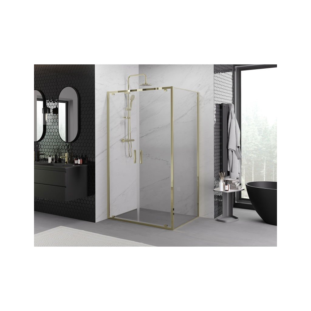 Cabină de duș cu balamale Mexen Exo 90 x 95 cm, sticlă transparentă, aurie, 8182-090-095-50-00