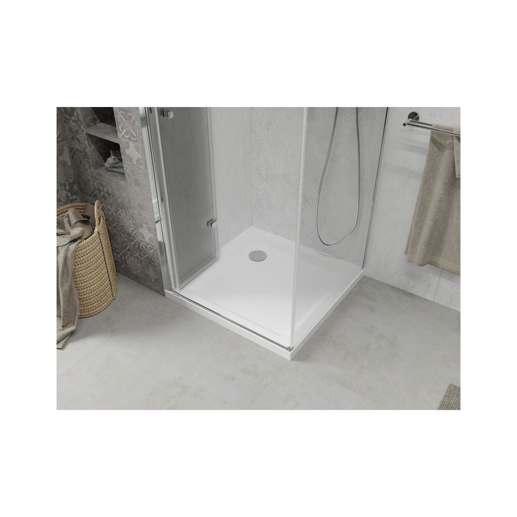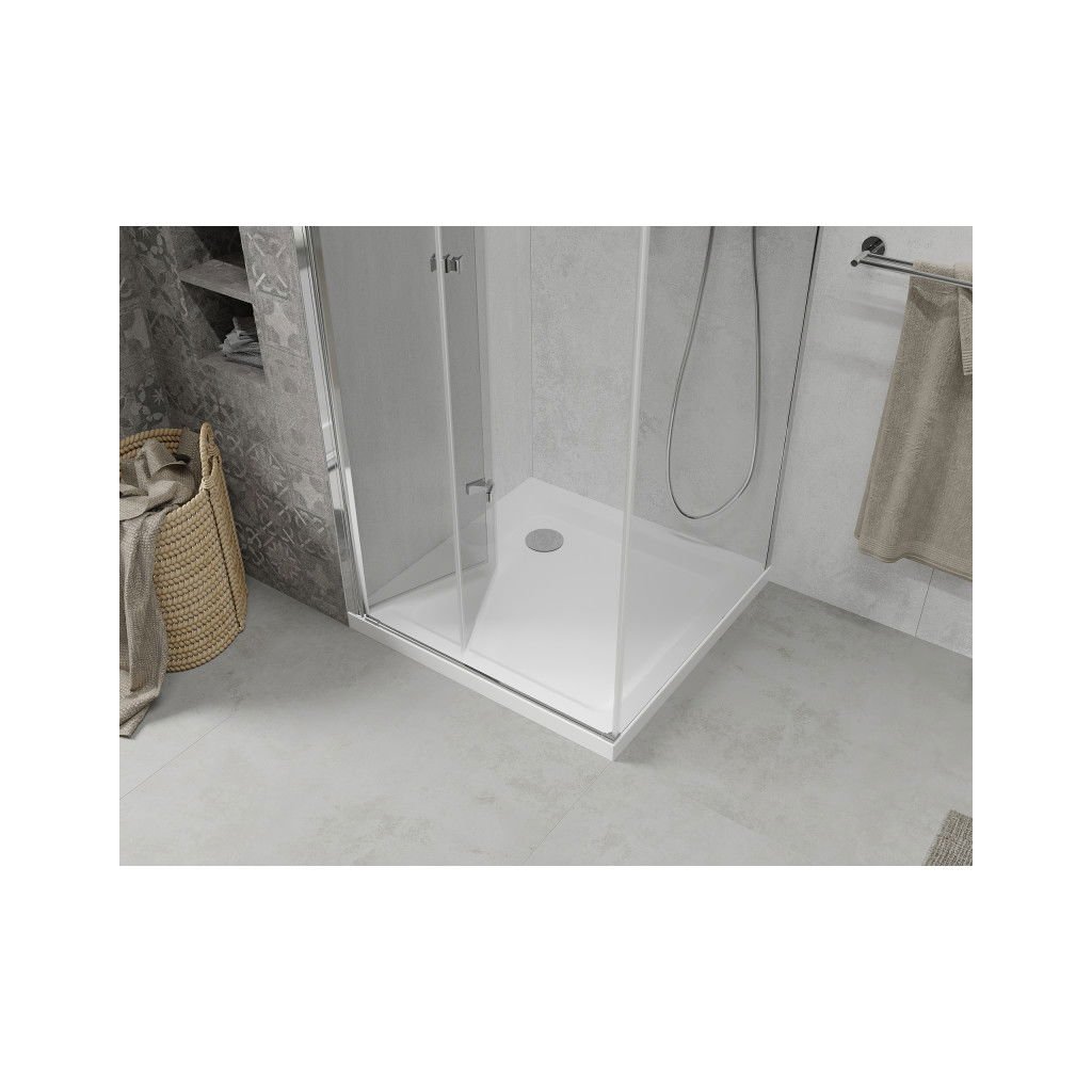 Cabină de duș Mexen Lima 90 (uşă) x 90 (perete) cm, sticlă transparentă 6mm, profil crom + cadă de duș SLIM albă 5cm, 856-090-090-00-00-4010