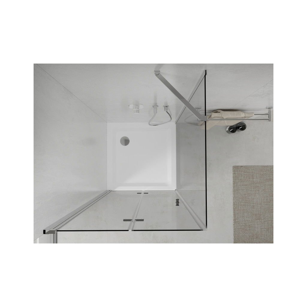 Cabină de duș Mexen Lima 90 (uşă) x90 (perete) cm, sticlă transparentă 6mm, profil crom + cadă de duș SLIM albă 5cm, 856-090-090-00-00-4010