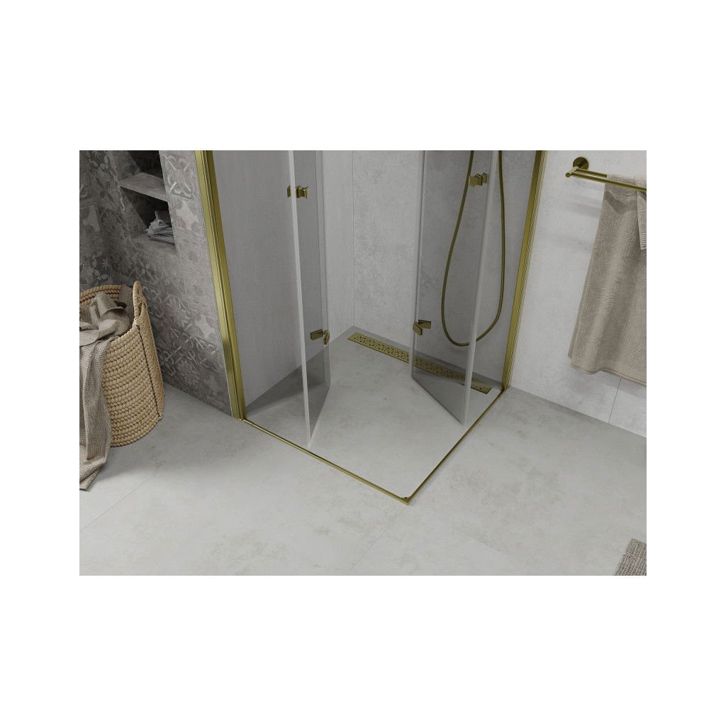 Cabina de dus Mexen Lima Duo cu usa plianta 80 x 80 cm, sticla transparenta 6 mm, profil auriu, 856-080-080-50-00-02