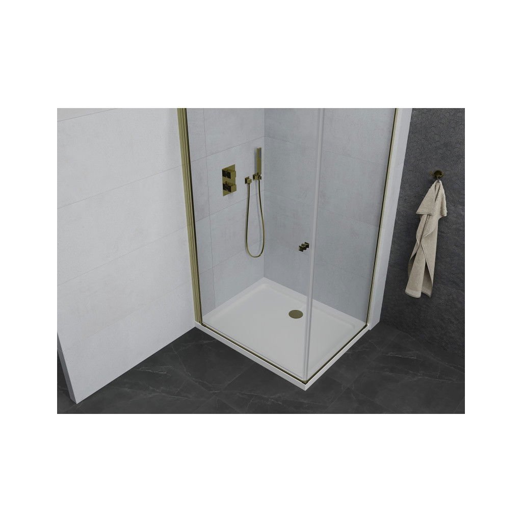 Cabină de duș Mexen Pretoria 90 x 80 cm, sticlă 6 mm, profil auriu-sticlă transparentă + cadă de duș subțire 5 cm, 852-090-080-50-00-4010