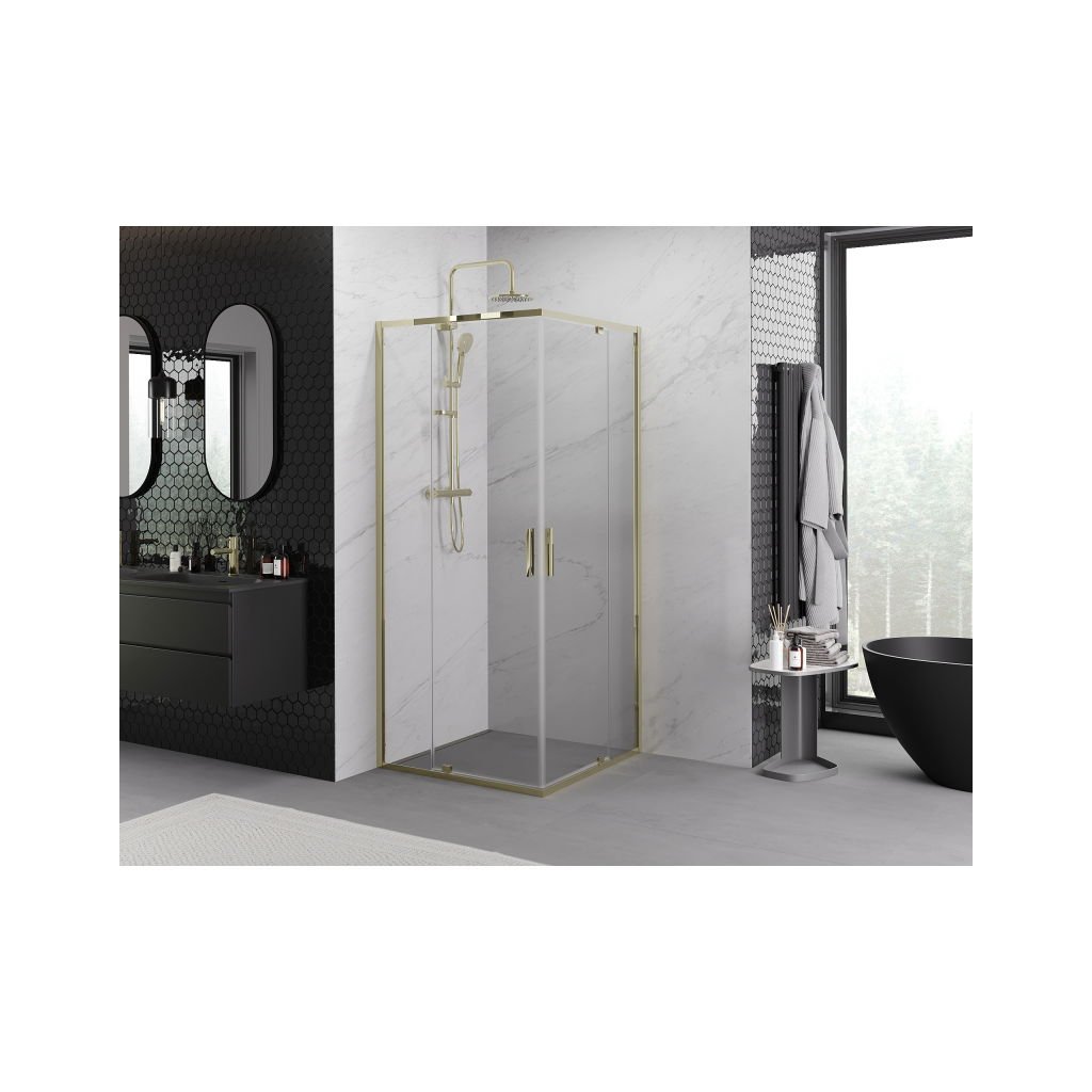 Cabină de duș pătrată cu balamale Mexen Exo 90 x 90 cm, sticlă transparentă, aurie, 8110-090-090-50-00