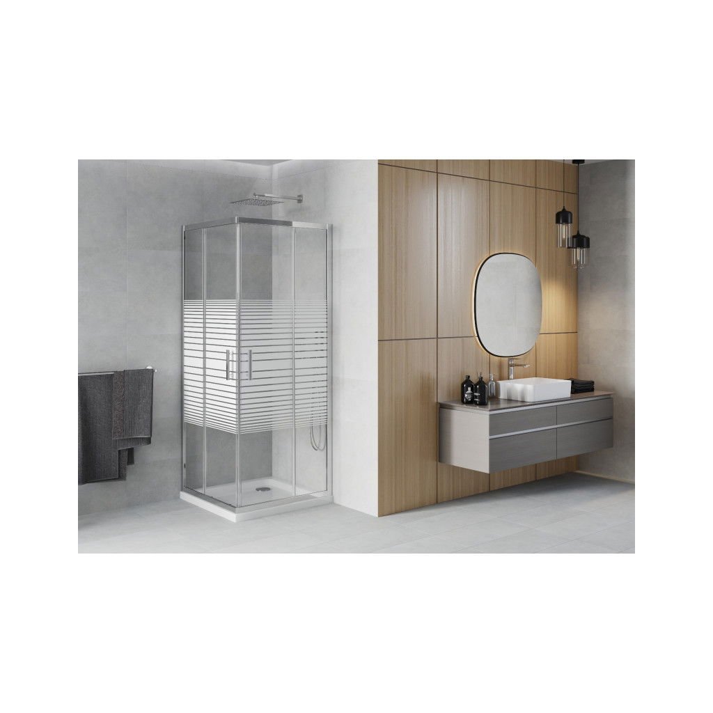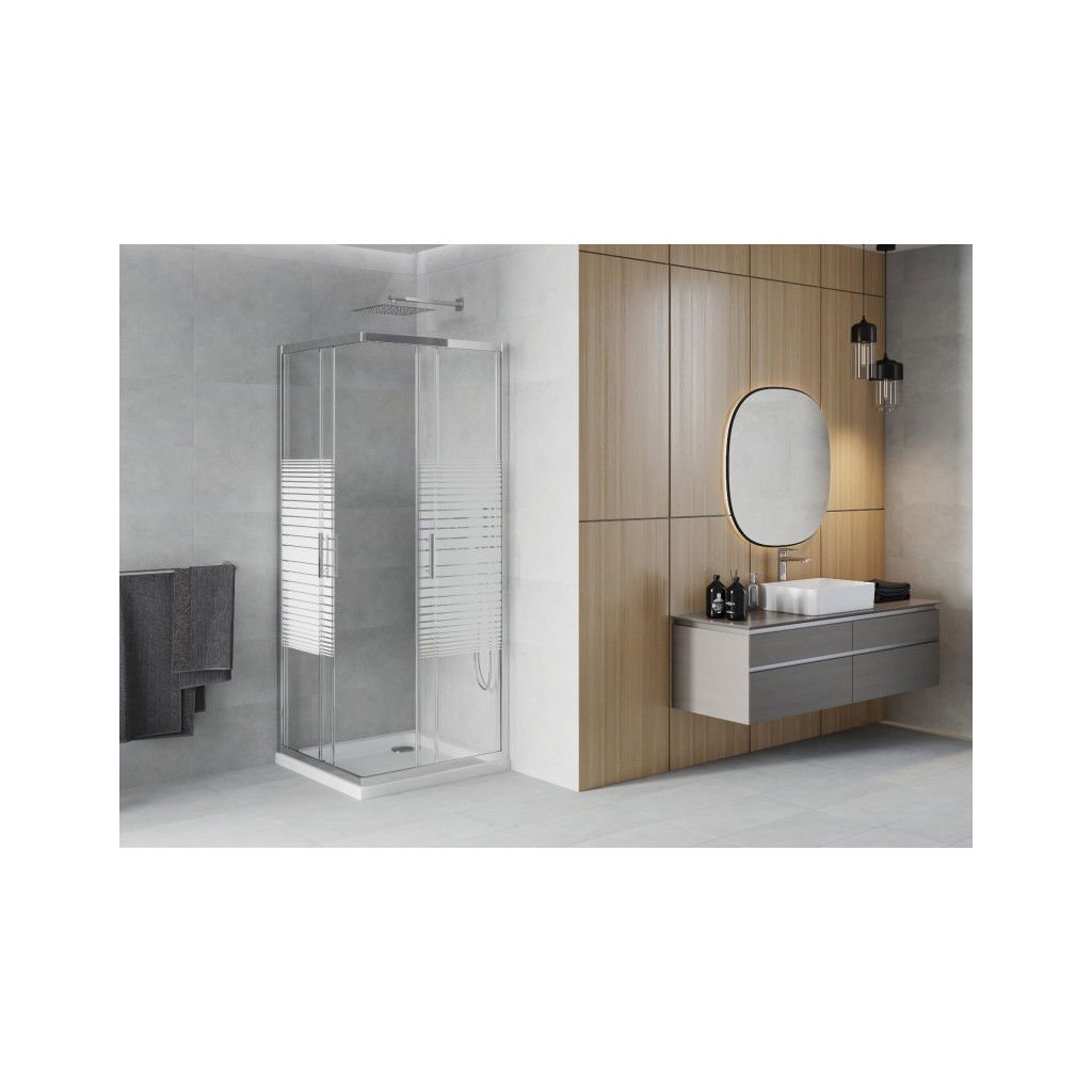 Cabină de duș pătrată Mexen Rio 80 x 80 cm, sticlă 6 mm, sticlă transparentă/benzi, profil crom + cadă de duș subțire 5 cm, 860-080-080-01-20-4010