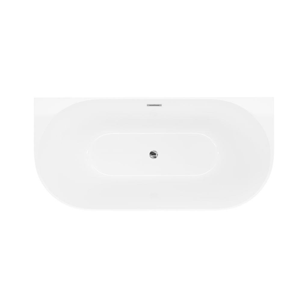 Cadă de baie independentă Mexen Oval Slim, lipită de perete, 170 x 80 cm, alb lucios, preaplin cromat, 52661708000-01