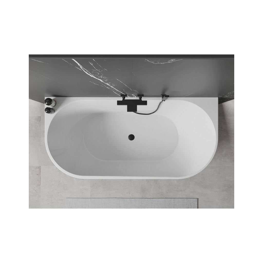 Cada de baie Mexen Oval, de sine stătătoare, montată pe perete, 180 x 80 cm, alb, negru mat, preaplin, 52671808000-70
