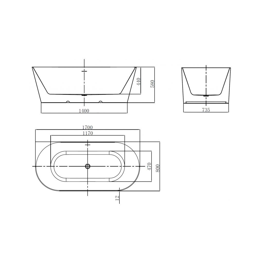 Cadă de baie Mexen Oval Slim, independentă, lipită de perete, 170 x 80 cm, alb lucios, preaplin negru mat, 52661708000-70