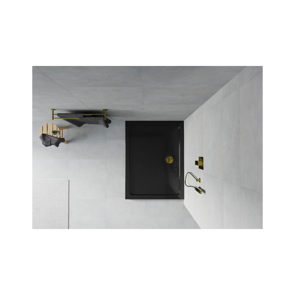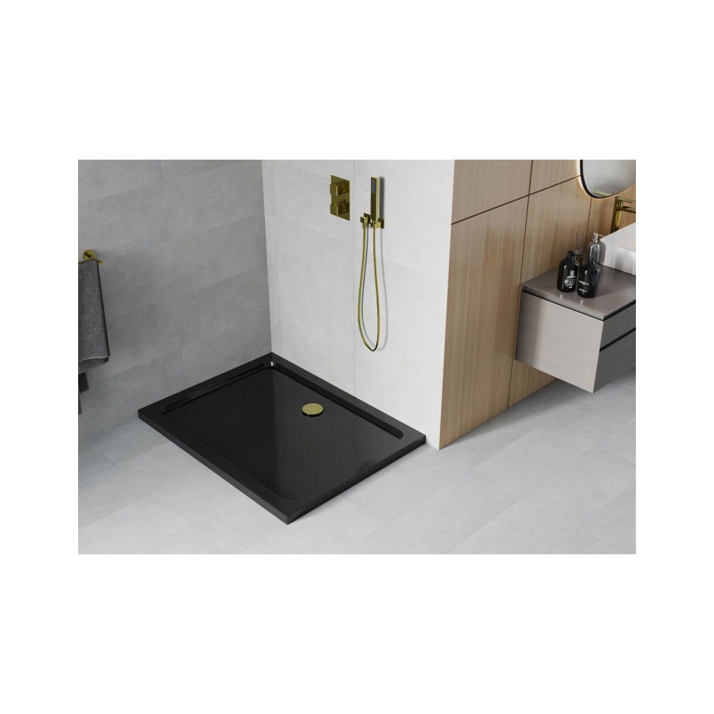 Cadă de duș Mexen Flat, acrilic 90x70x5 cm SLIM, negru, sifon auriu, 40707090G