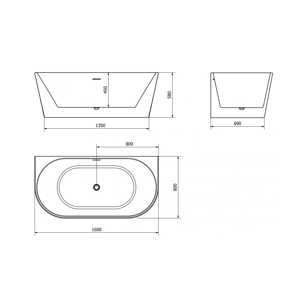 Cada Mexen Oval, de sine stătătoare, montată pe perete, 160 x 80 cm, alb, preaplin auriu mat, 52671608000-55