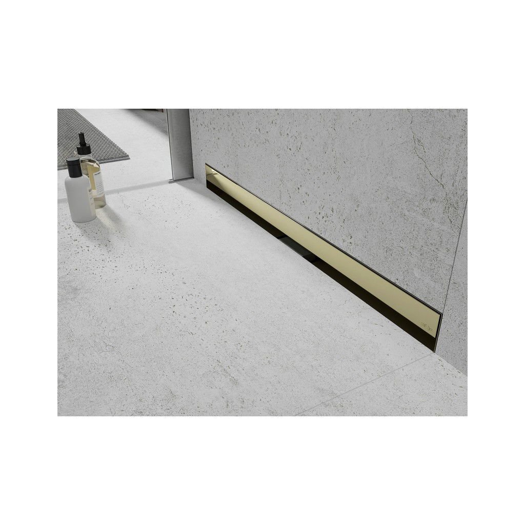 Canal de duș Mexen plat din oțel inoxidabil pe perete 90 cm model 2 în 1, auriu, 1530090