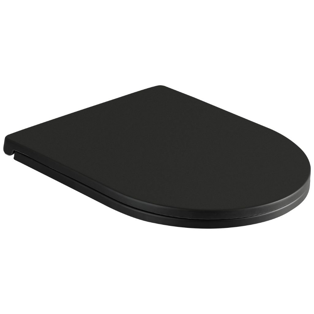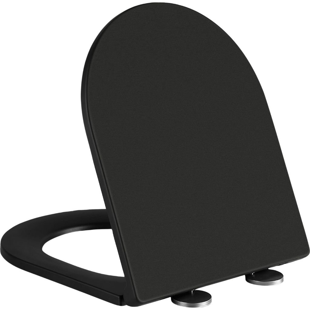Capac de toaletă cu închidere lentă și profil SLIM, fabricat din duroplast durabil, cu finisaj negru mat. Este o soluție elegantă, potrivită pentru toaletele moderne, cu funcție de închidere silențioasă și demontare ușoară pentru curățare.