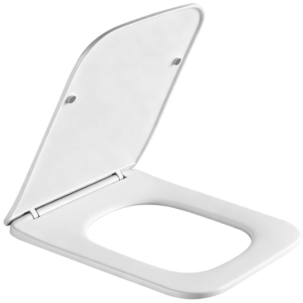 Capac de toaletă cu închidere lentă și profil SLIM, fabricat din duroplast durabil, cu finisaj alb lucios. Este o soluție elegantă, potrivită pentru toaletele moderne, cu funcție de închidere silențioasă și demontare ușoară pentru curățare.