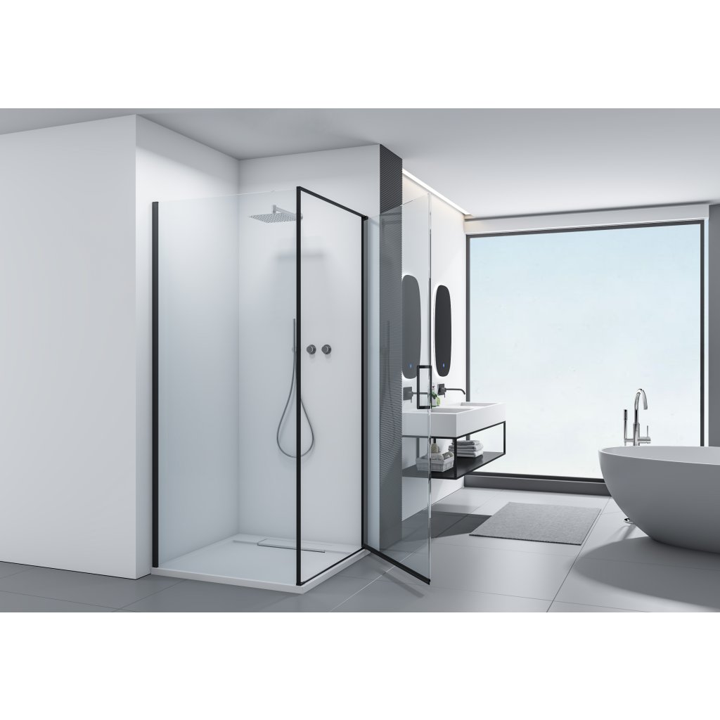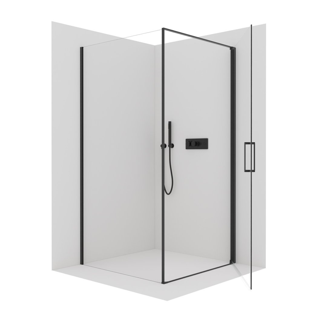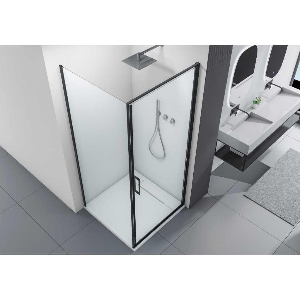 Cerano Porte, cabină de duș cu 1 aripă 90x100 cm, sticlă transparentă de 8 mm, profil negru, CER-CER-413582