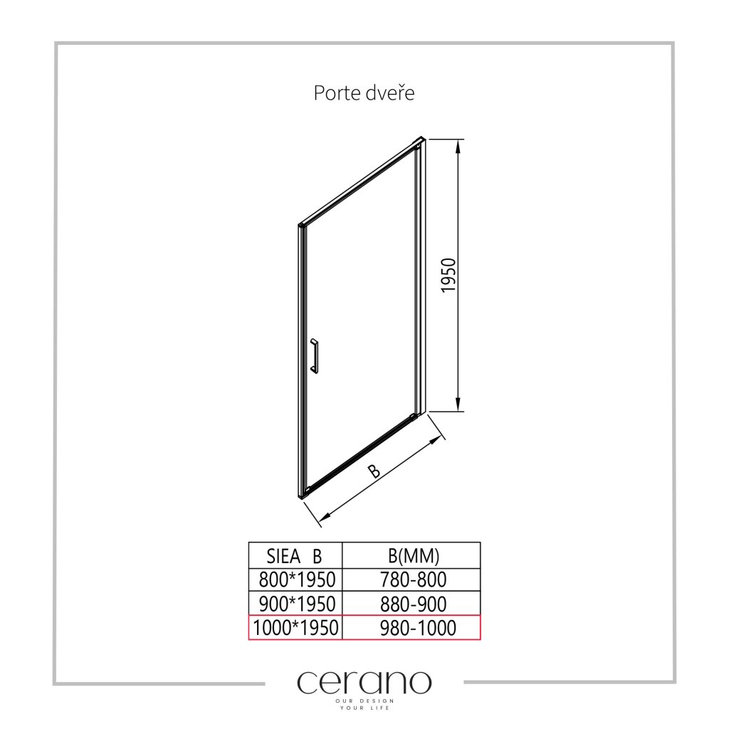 Cerano Porte, usa de dus cu 1 canat 100x195 cm, sticla transparenta 8mm, profil cromat, CER-CER-413480