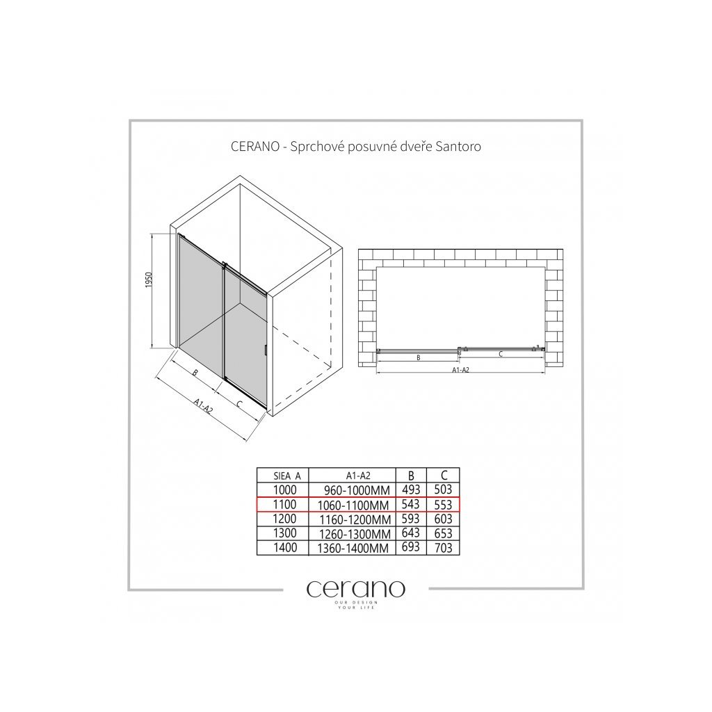 Cerano Santoro, usa de dus culisanta 110x195 cm, sticla transparenta 6mm, profil negru, CER-CER-429733