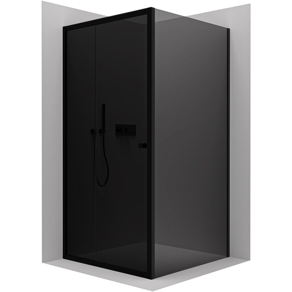 Cerano Varone, perete de duș fix pentru colț de duș 100x195, sticlă gri 6mm, profil negru mat, CER-CER-429463