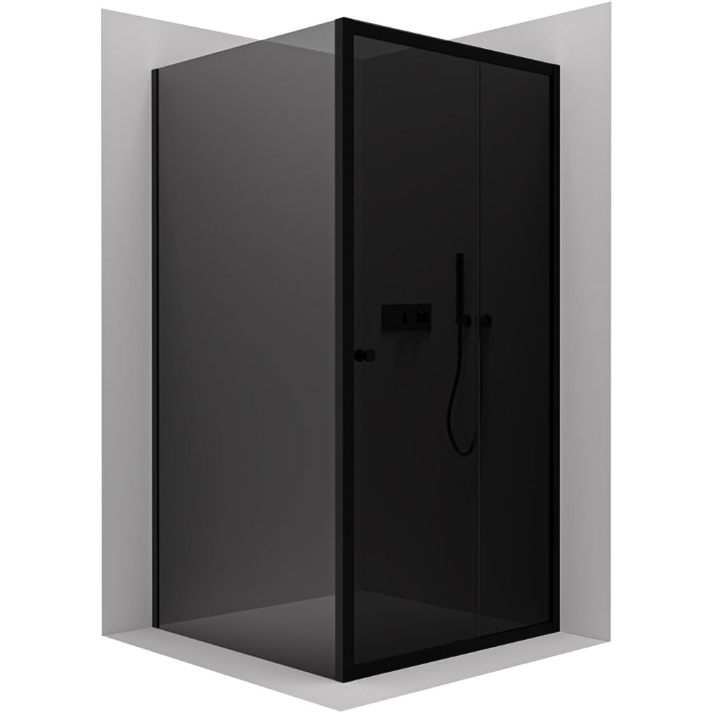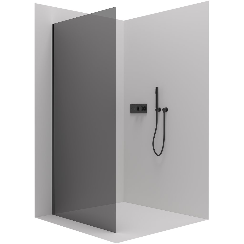 Cerano Varone, perete de duș fix pentru colț de duș 70x195, sticlă gri 6mm, profil negru mat, CER-CER-429451