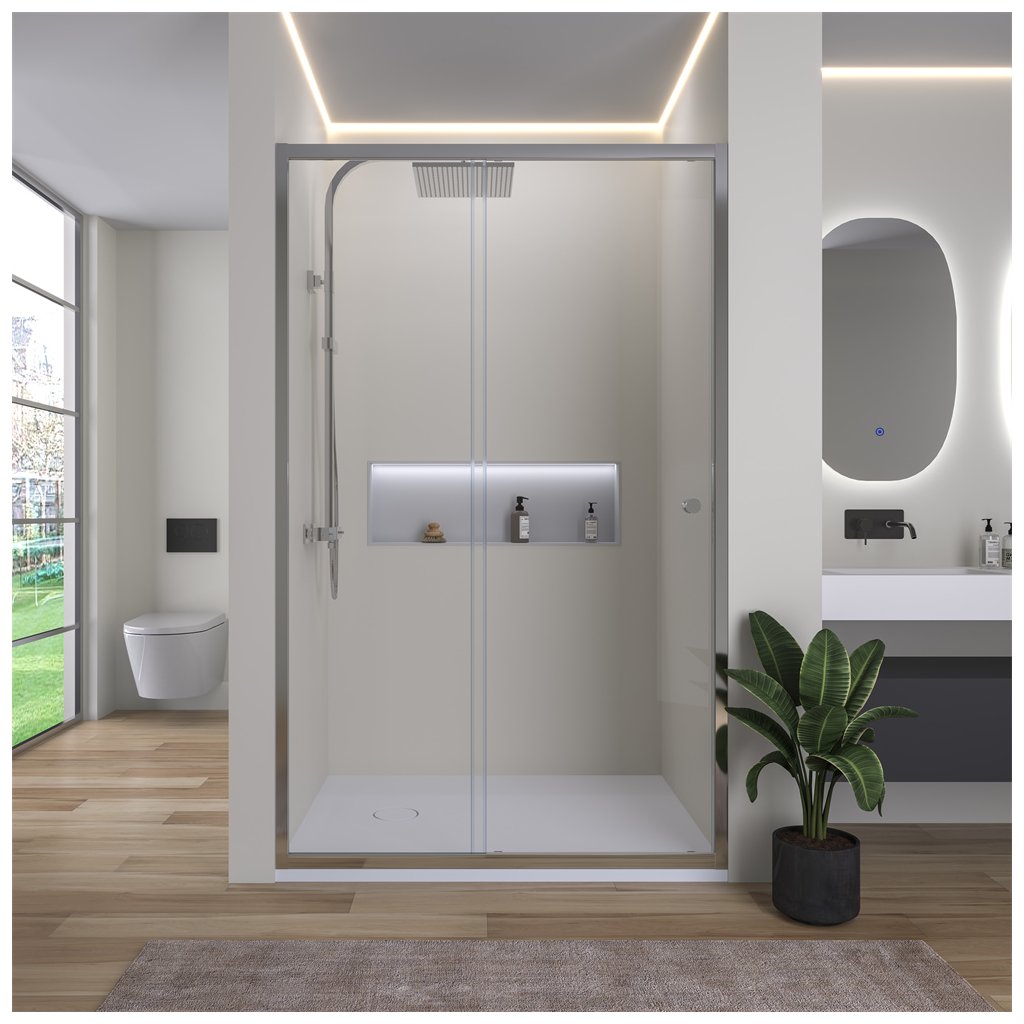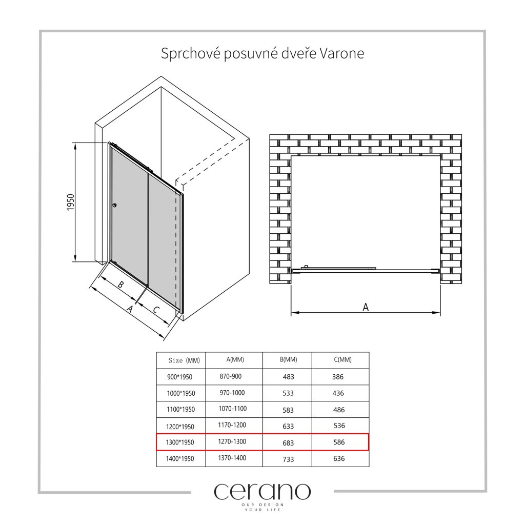 Cerano Varone, usa culisanta de dus 130x195 cm, sticla transparenta 6mm, profil cromat, CER-CER-DY505-130-195
