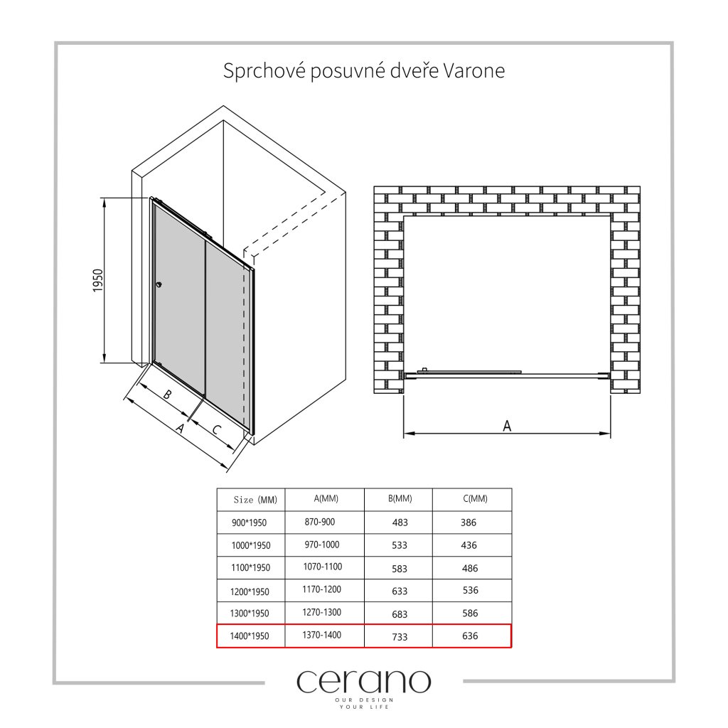 Cerano Varone, usa culisanta de dus 140x195 cm, sticla transparenta 6mm, profil cromat, CER-CER-DY505-140-195