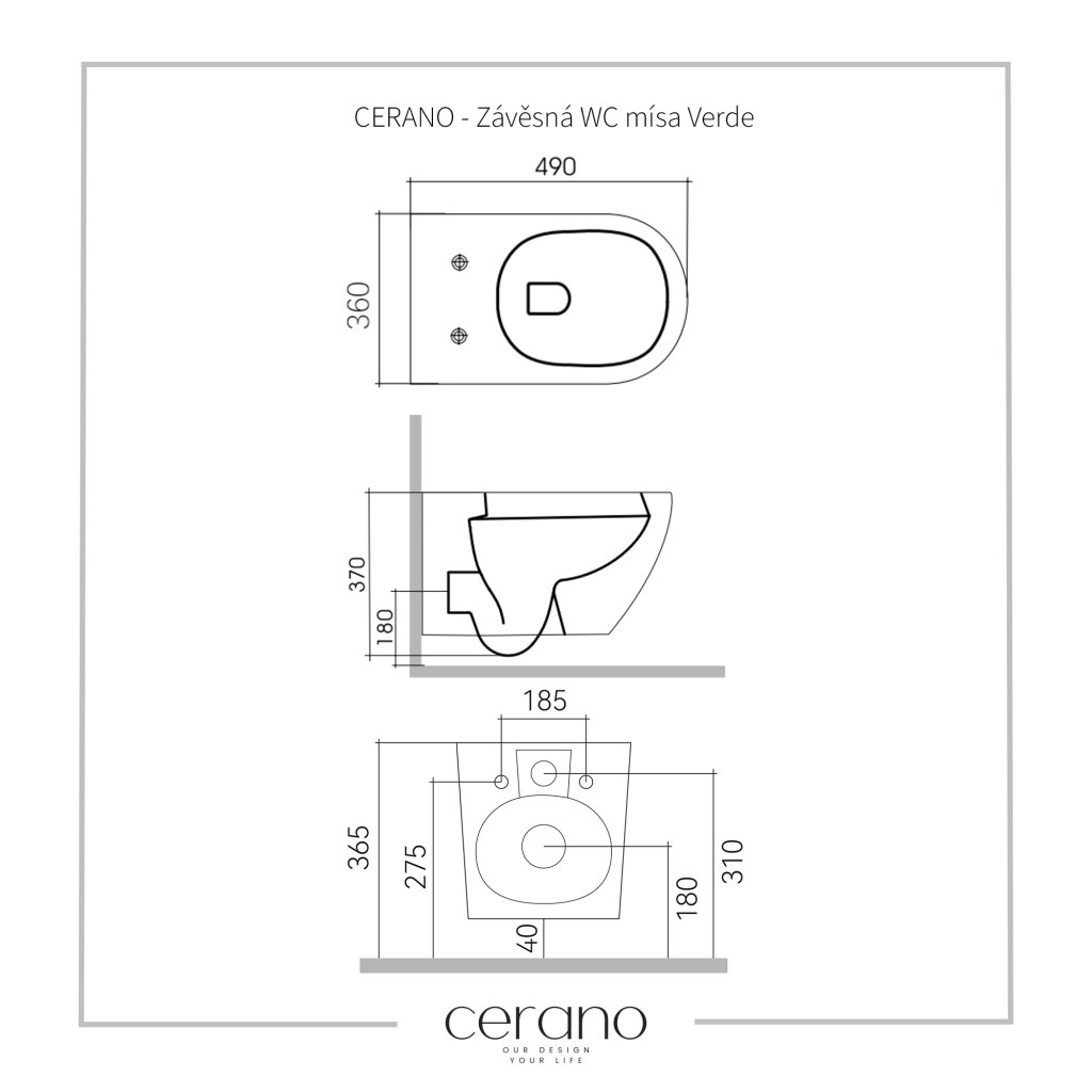 Cerano Verde, vas WC suspendat Rimless 490x360x370 mm + scaun WC UF, alb lucios, CER-CER-417341