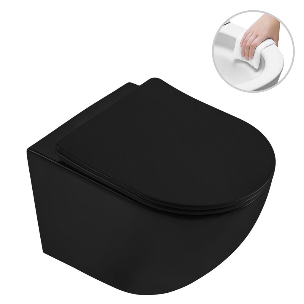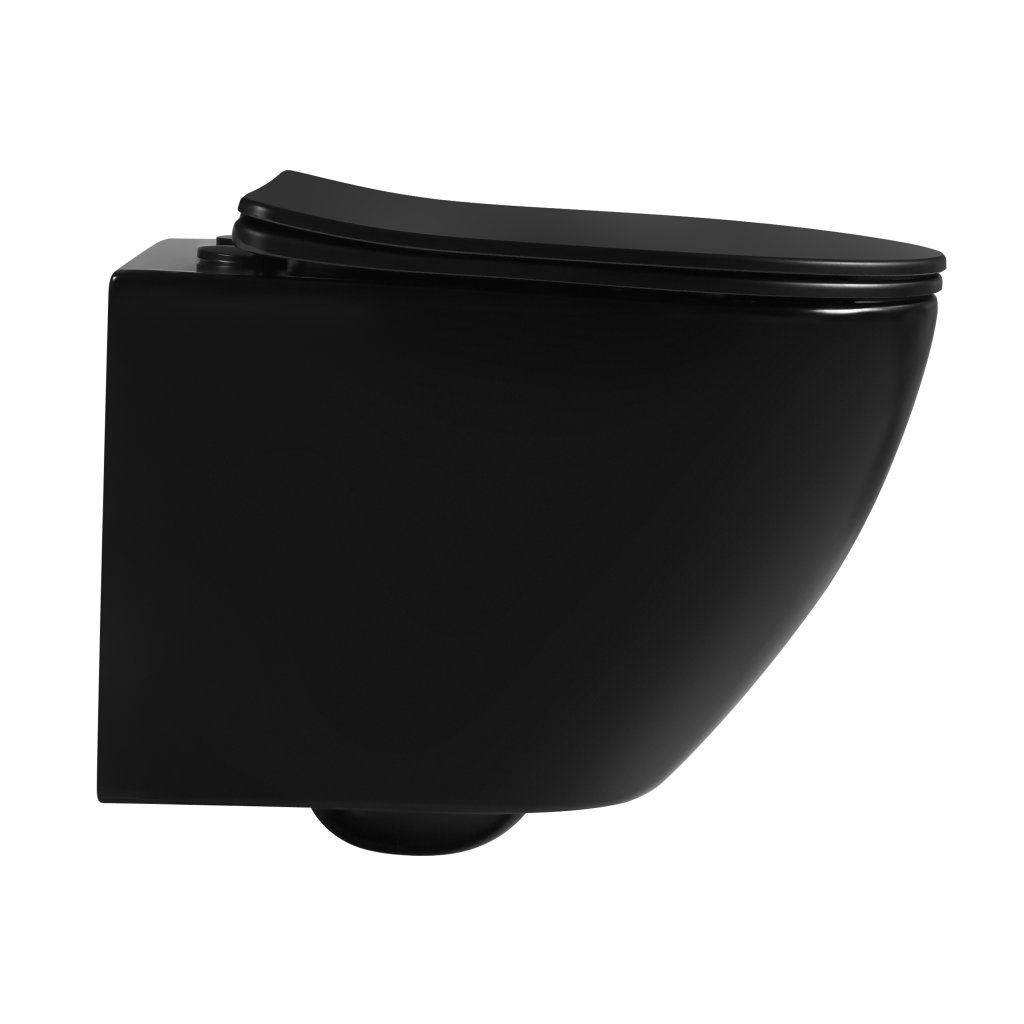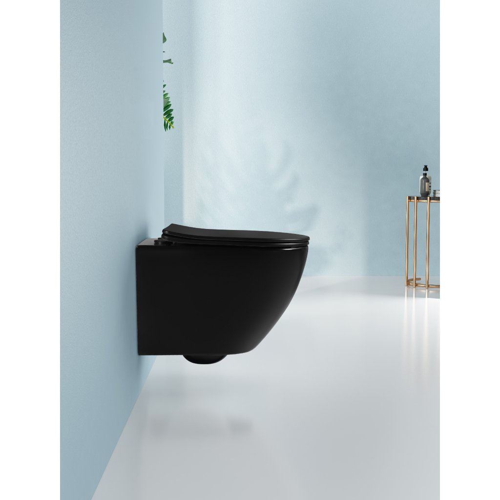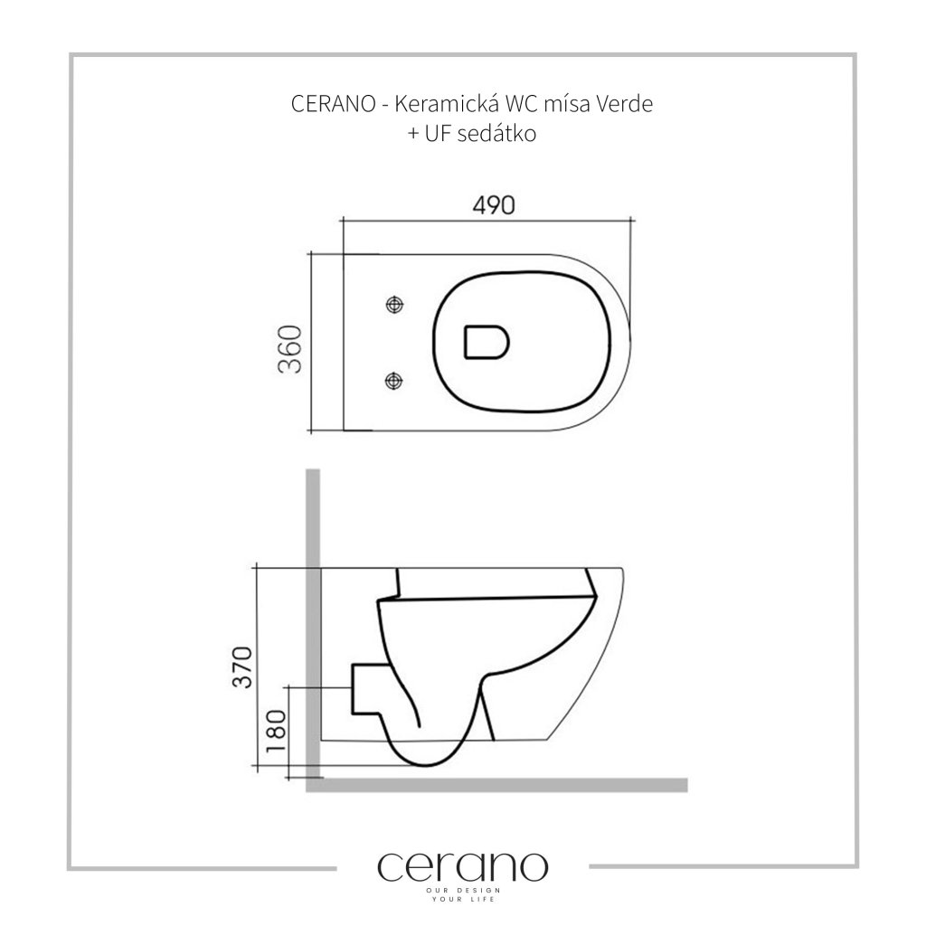 Cerano Verde, vas WC suspendat Rimless 490x360x370 mm + scaun WC UF, negru lucios, CER-CER-417347
