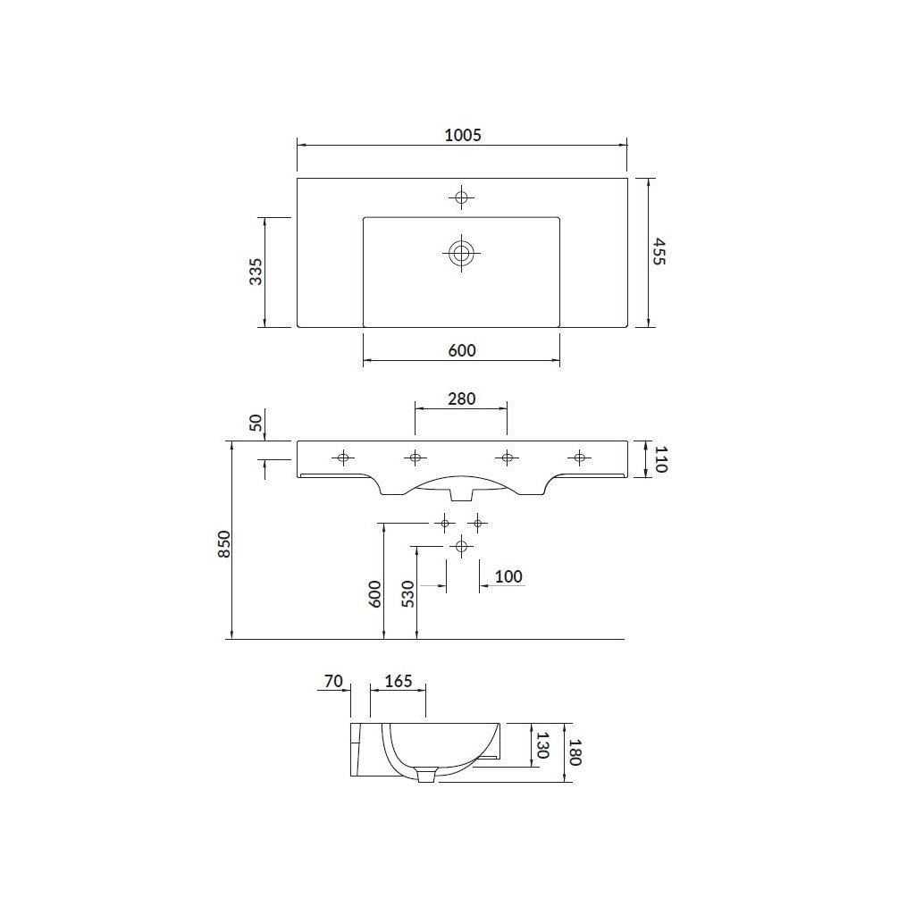 Cersanit Inverto, chiuveta mobila/blat cu preaplin 100,5x45,5 cm, alb, K671-007