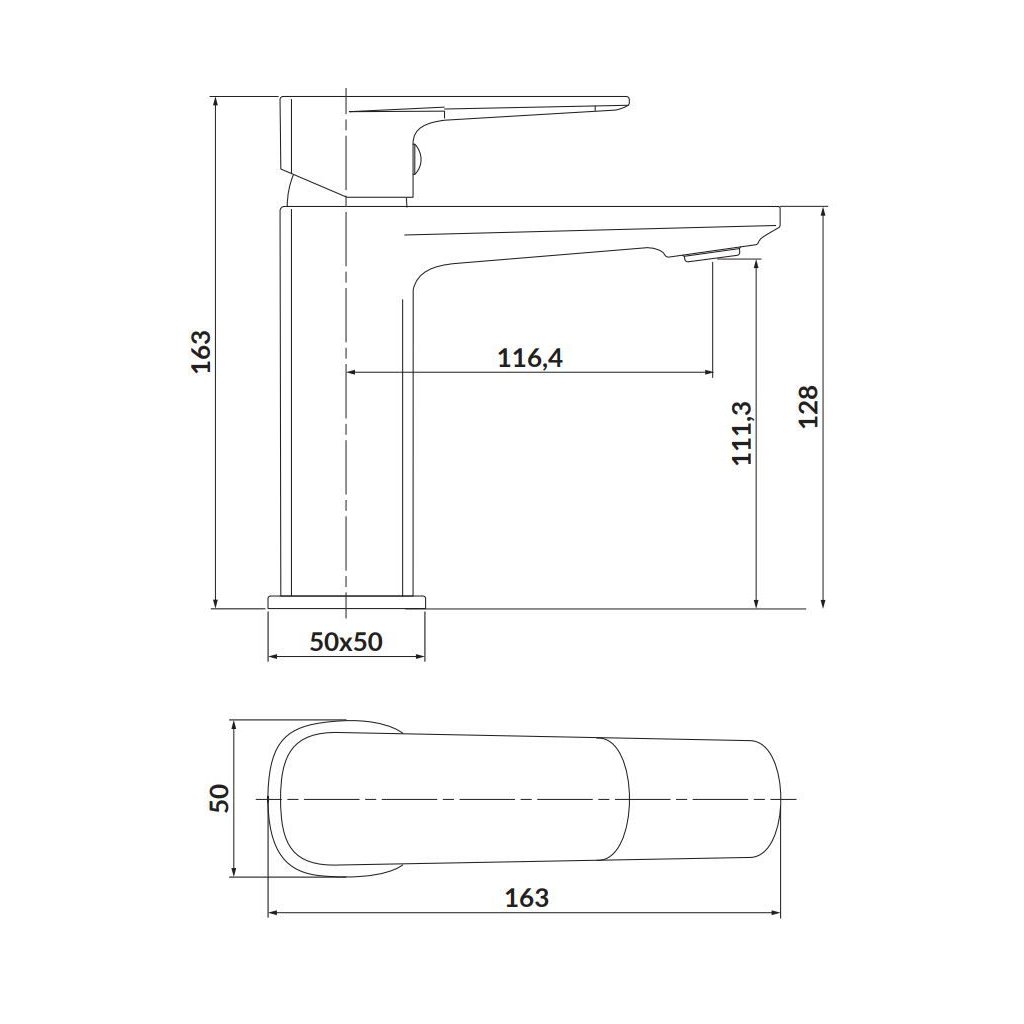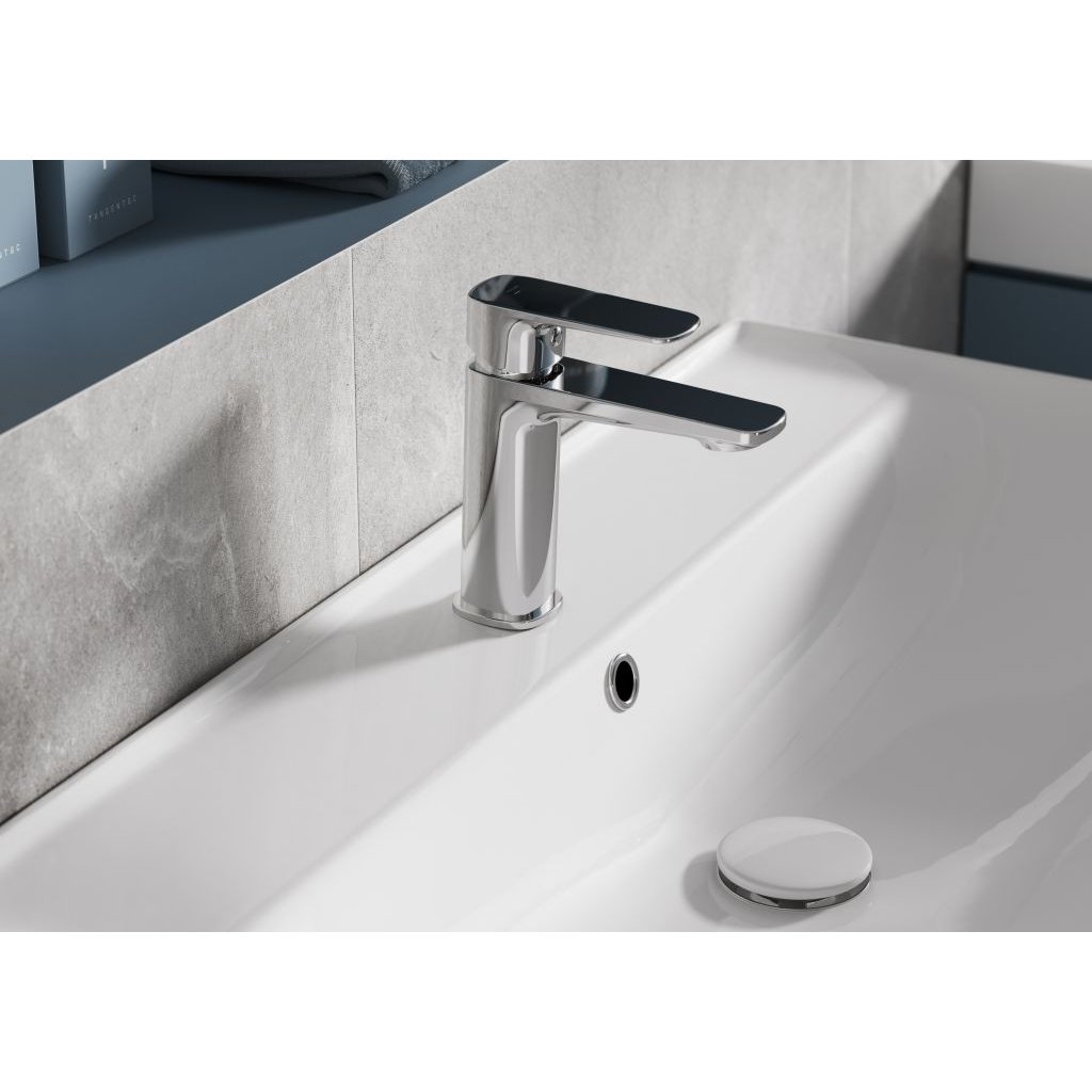Baterie cu pârghie pentru lavoar din seria LARGA cu design cromat. Setul de scurgere nu este inclus cu bateria.
