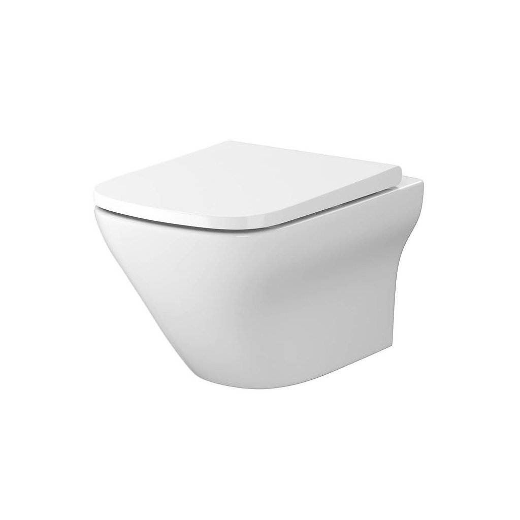 Cersanit Larga pătrat Clean On, vas de toaletă suspendat + scaun cu închidere lentă din duroplast, alb, S701-473