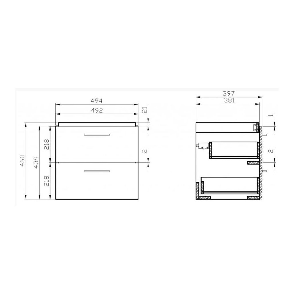 Setul include un dulap pentru chiuveta LARA 50 montat pe perete cu chiuveta ceramica MILLE SLIM 50 Fata si corpul dulapului sunt realizate din PAL de 16 mm de culoare gri lucios. Dulapul are două sertare spațioase cu sistem de închidere treptată și mânere cromate. Mobilierul trebuie asamblat singur. Garantia pentru chiuveta este de 10 ani, pentru dulap 2 ani.