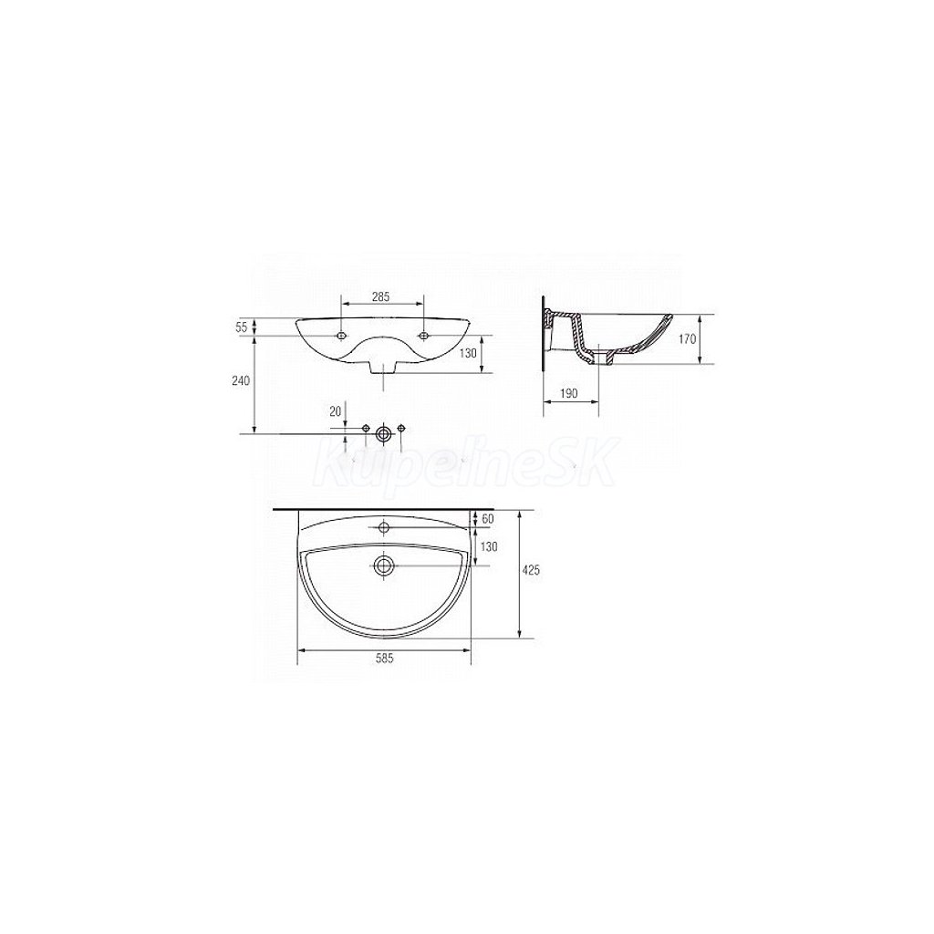 Cersanit MITO RED, chiuveta ceramica montata pe perete 585x425x170 mm, alb, TK001-006