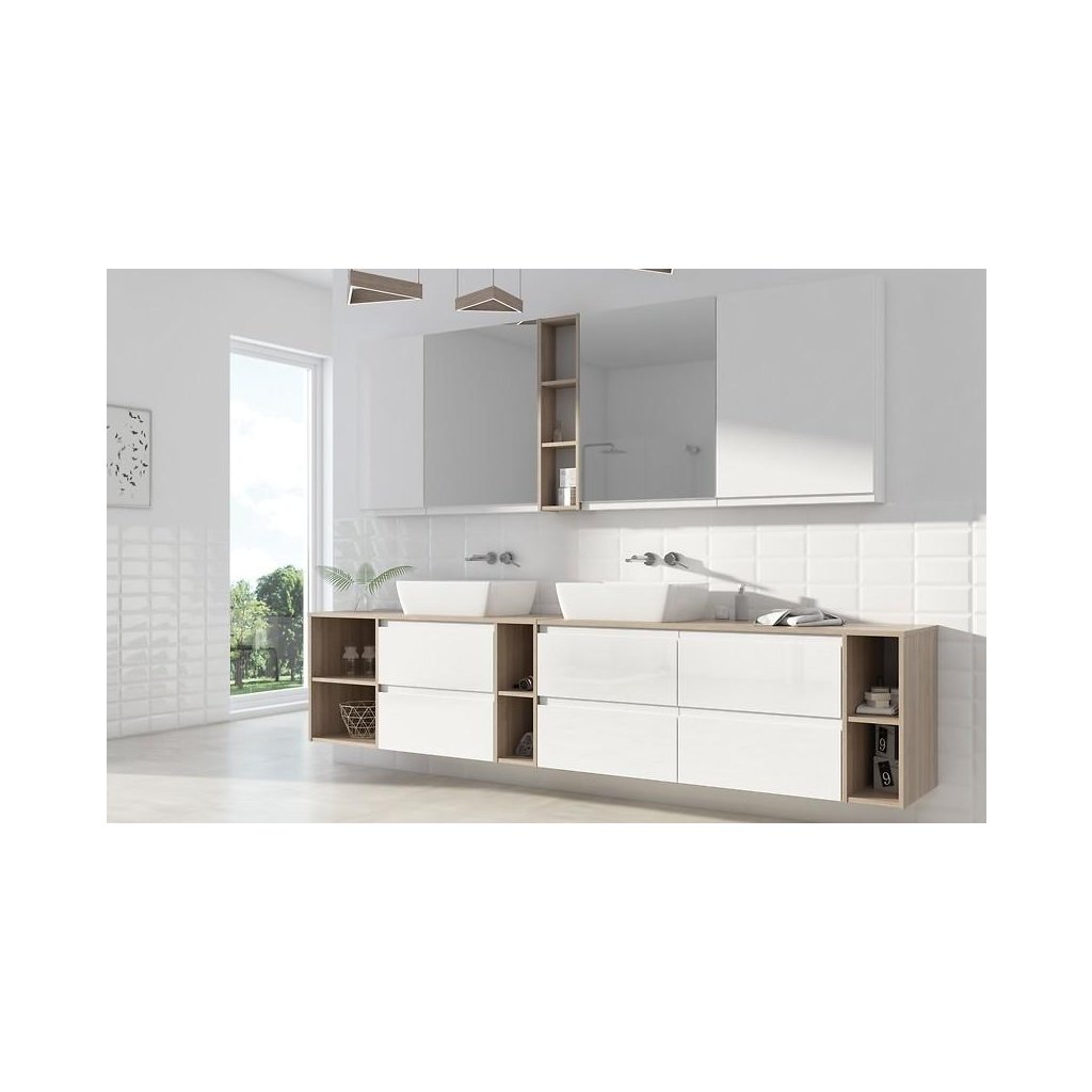 Noua colectie MODUO este o oferta extinsa de mobilier de baie, unde este posibila o amenajare nelimitata in functie de posibilitatile spatiului si imaginatia dumneavoastra. Dulapurile de baie sunt realizate în alb și gri, care pot fi combinate cu o combinație de scândură și raft în design stejar. Materialul este rezistent la umezeală, datorită utilizării tehnologiei AQUASAFE, care va rămâne în stare perfectă mulți ani.