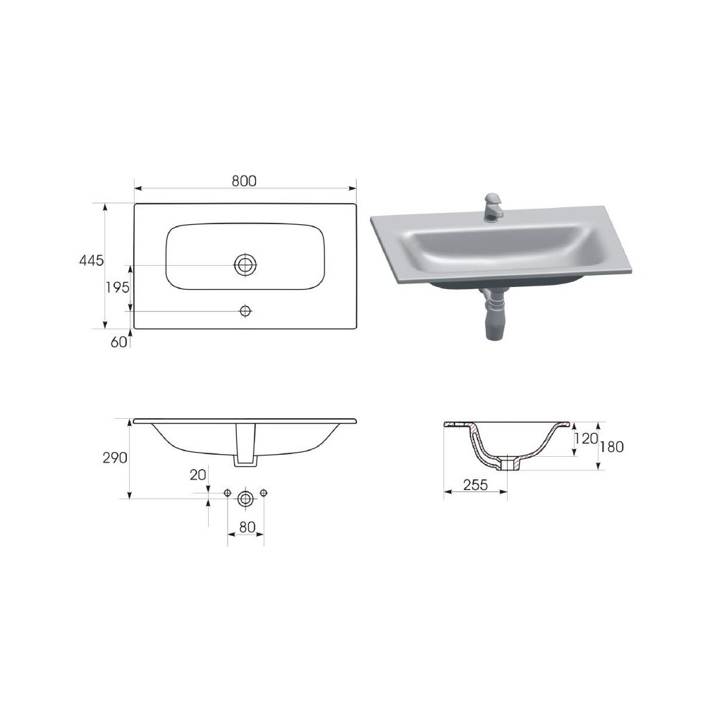 Cersanit Moduo - chiuveta incastrata 80x45cm, alb, K116-044