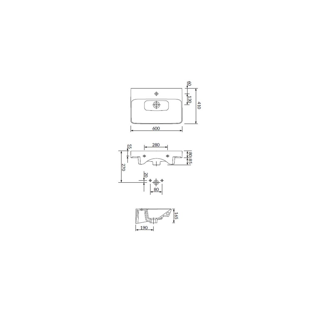 - Lavoar: cu orificiu pentru robinet și orificiu pentru preaplin