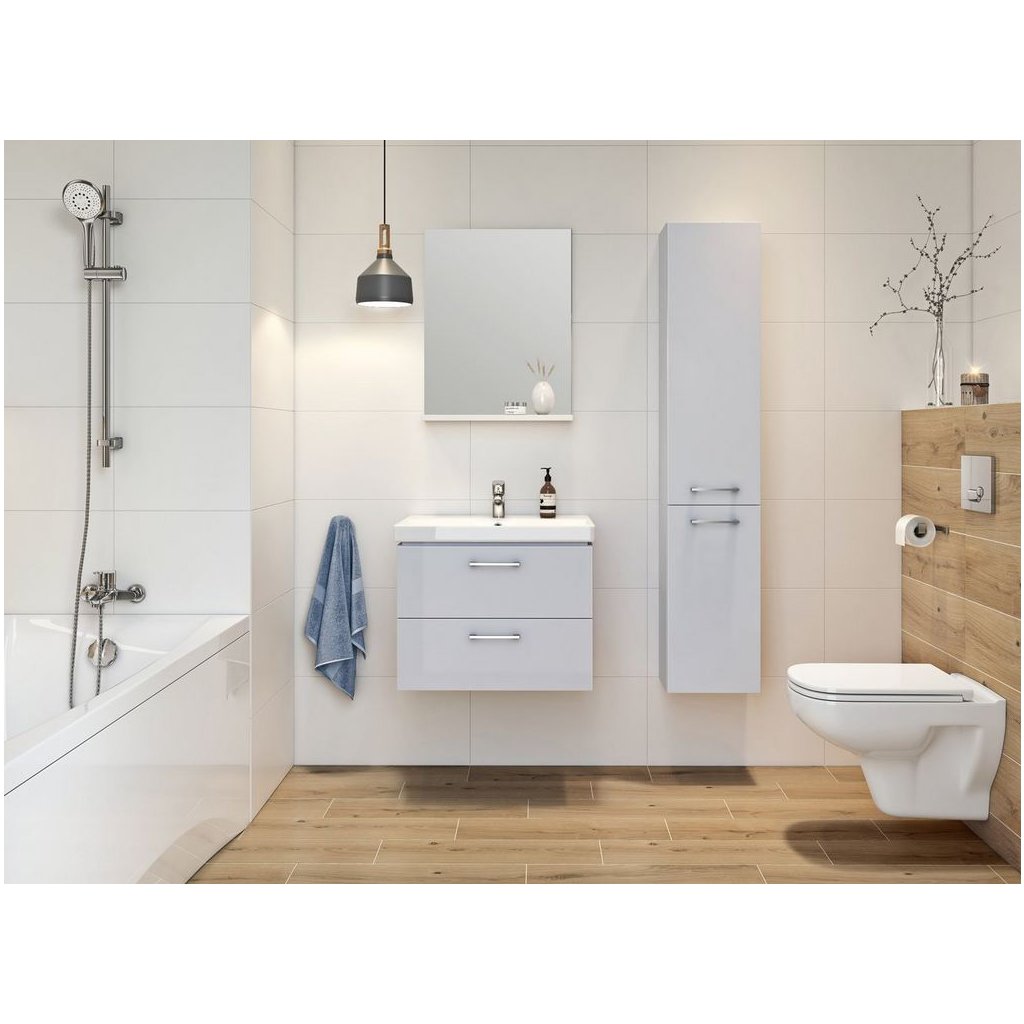 Setul Cersanit - Lara City 50 (dulap + chiuveta) este o alegere excelenta pentru cei care doresc sa-si amenajeze baia intr-un mod modern, fara interventii complicate. Cersanit este cunoscut pentru soluții grozave, disponibile la prețuri mici, iar acest kit este un bun exemplu în acest sens. Dulapul într-o culoare perfectă de gri lucios este lăcuit, ceea ce îl face ușor de păstrat, la fel ca mânerele de sertare cromate. Un plus avantajos este sistemul de inchidere lenta, care absoarbe inchiderea rapida a sertarelor. Chiuveta albă se potrivește perfect cu dulapul și va fi un decor al oricărei băi. Dimensiunile dulapului suspendat sunt de 49,4 centimetri latime, 46 centimetri inaltime si 39,7 centimetri adancime.