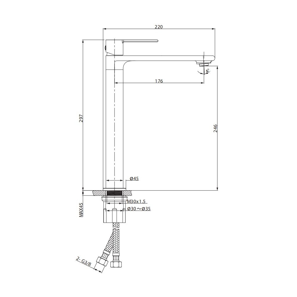 - Tip: robinet chiuvetă cu pârghie înaltă