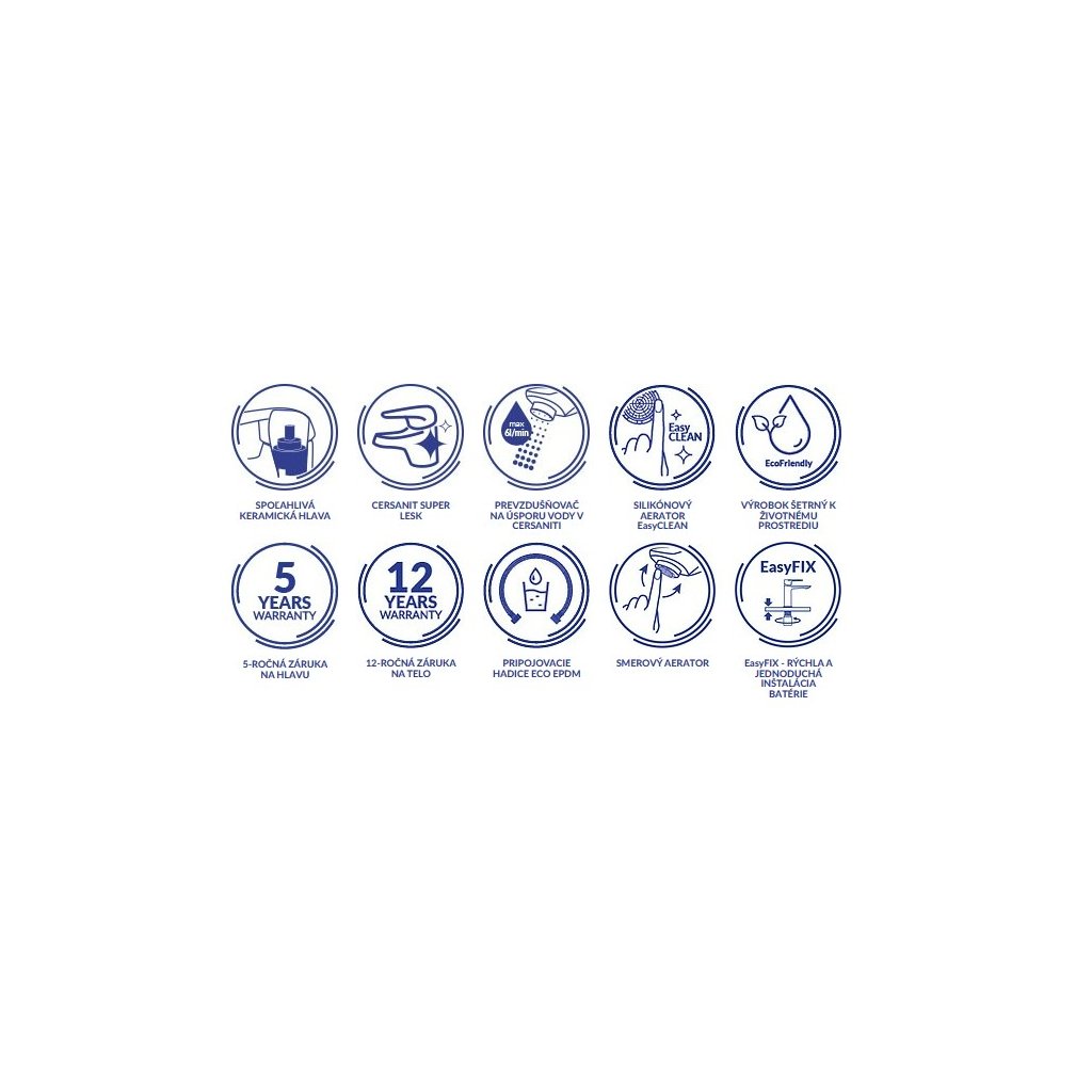 Forma usor rotunjita, prelucrare perfecta si functionalitate adaptata nevoilor consumatorului modern. Hardware-ul VIRGO va fi o adevărată bijuterie pentru ochiul oamenilor care caută soluții de designer la un preț rezonabil. Fitingul pentru chiuveta cu pârghie din colecția VIRGO este echipat cu un aerator din silicon, direcțional, ușor de curățat, Cersanit Water Save și un cap ceramic de 35 mm, care permite reglarea lină a debitului de apă. Aeratorul Cersanit Water Save este o solutie ecologica, deoarece datorita acesteia, debitul de apa este eficient aerat, ceea ce ii mareste volumul si reduce debitul de apa la 6 l/min. Acest lucru vă va permite să obțineți un flux puternic și puternic fără a deșuruba la maximum robinetul. Bateria este echipata si cu furtunuri flexibile de conectare Eco EPDM cu lungimea de 60 cm. Furtunurile sunt certificate WRAS, ceea ce confirmă calitatea lor înaltă. Un strat special căptușește interiorul furtunurilor, astfel încât apa să nu-și schimbe gustul și mirosul. Fitingurile sunt echipate cu sistemul de asamblare rapidă EasyFIX pentru o instalare ușoară fără unelte. Produsul este acoperit de o garanție de 12 ani pe caroserie și o garanție de 5 ani pe cap.