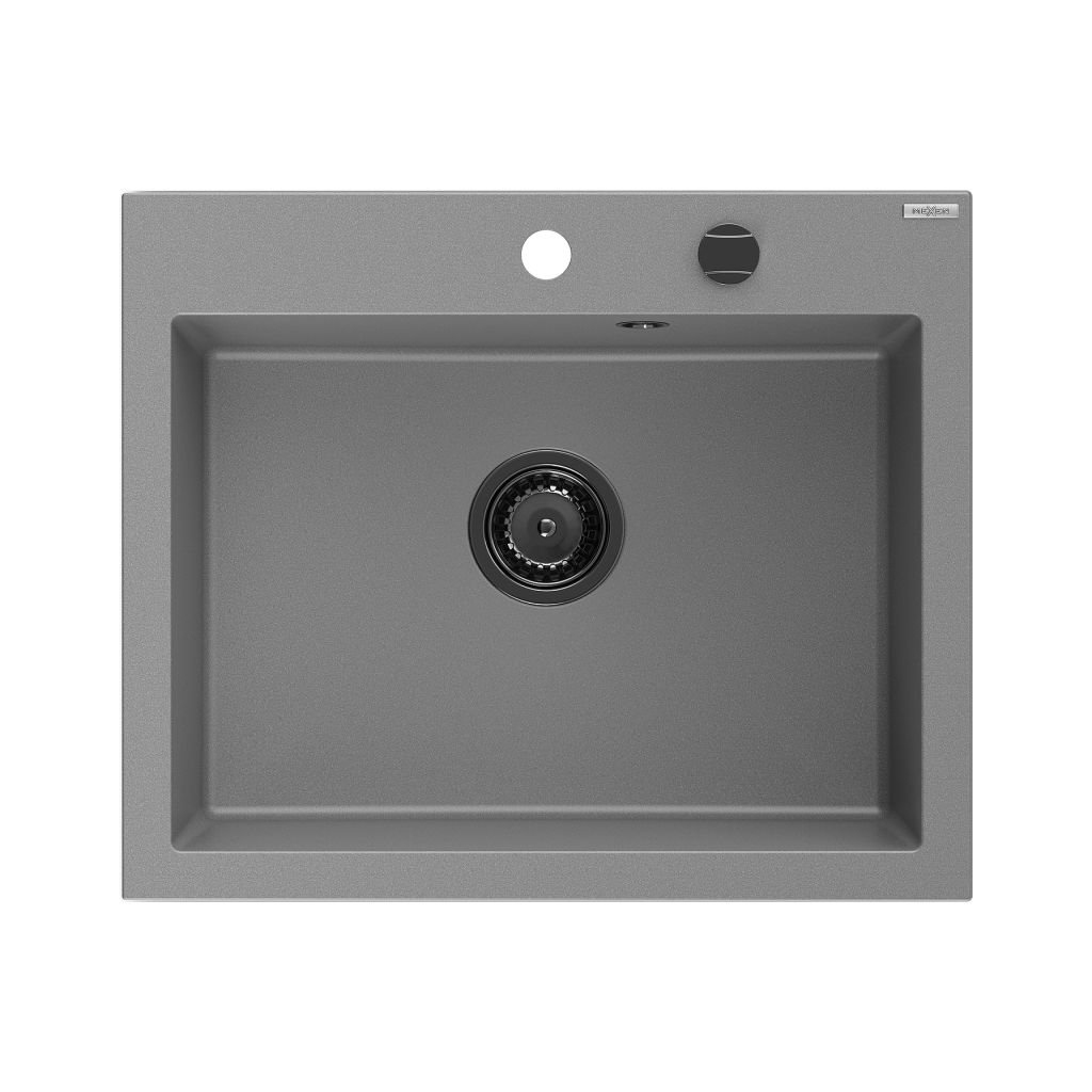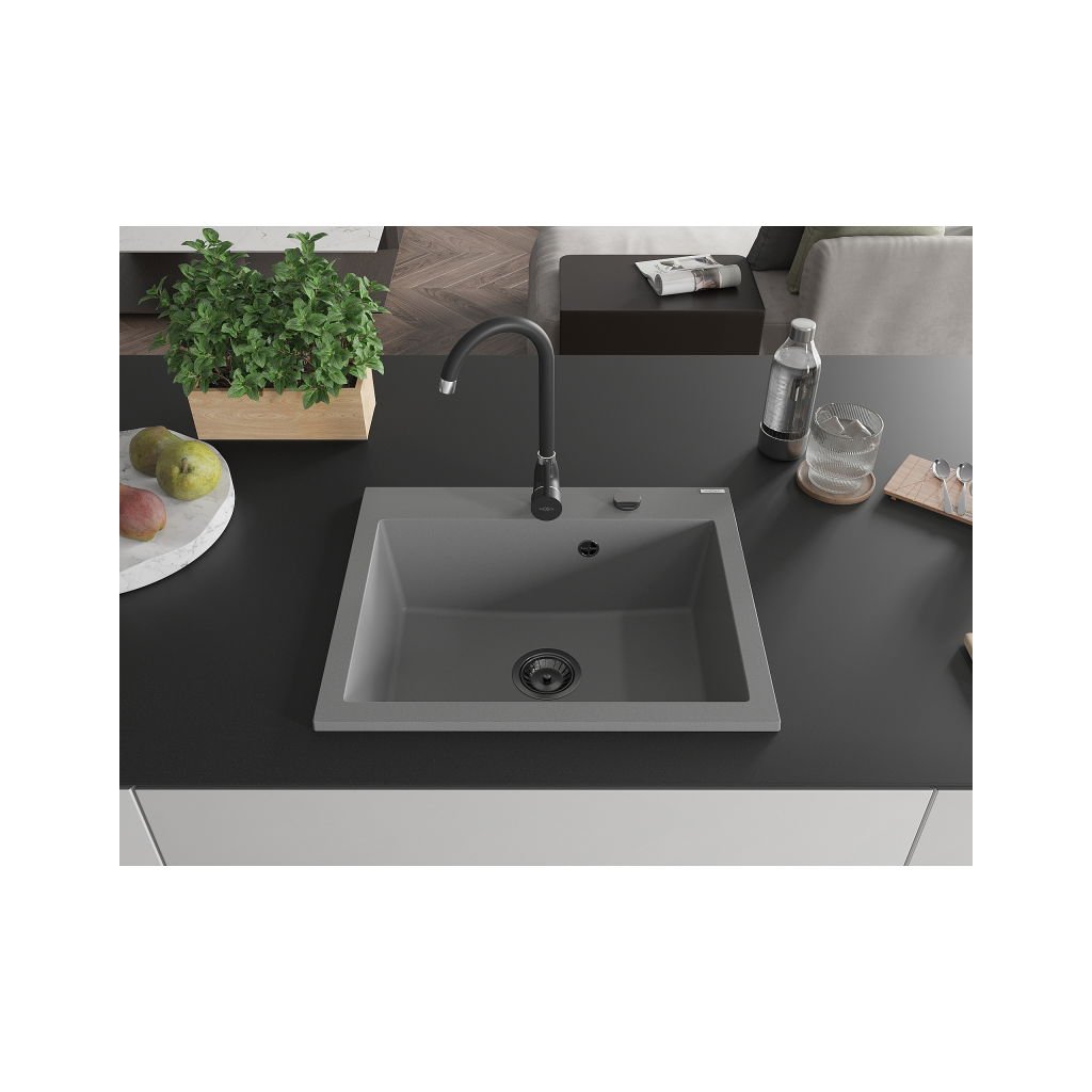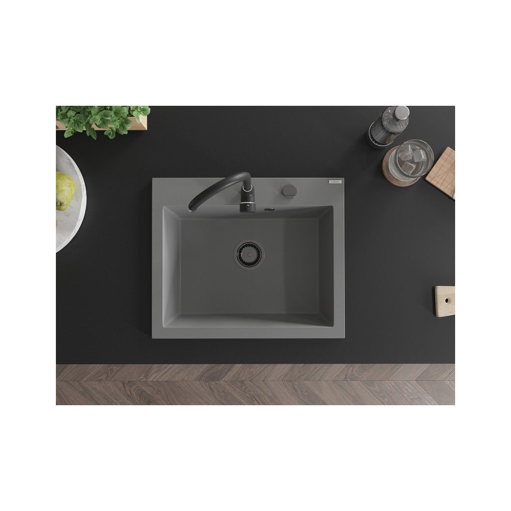Chiuvetă din granit Mexen Elix cu 1 compartiment 600 x 500 mm, gri, sifon negru - 6525601005-71-B