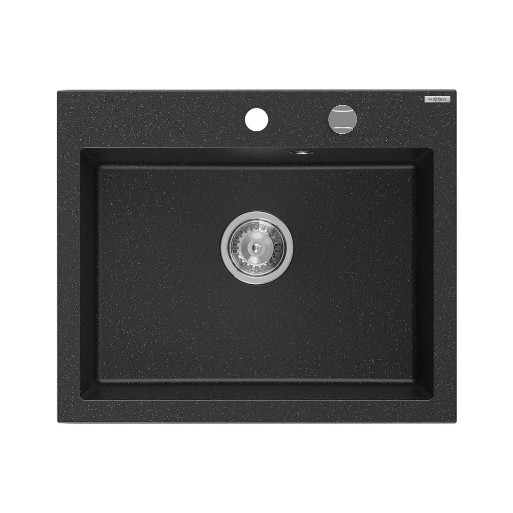 Chiuvetă din granit Mexen Eliz cu 1 compartiment, 600 x 500 mm, negru/argintiu metalic, sifon cromat - 6525601005-73